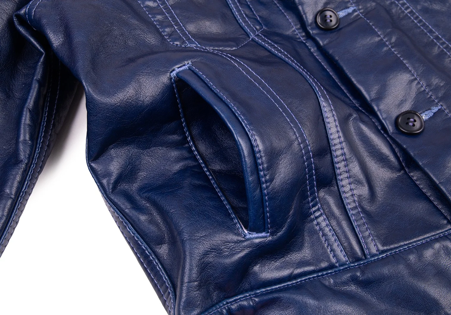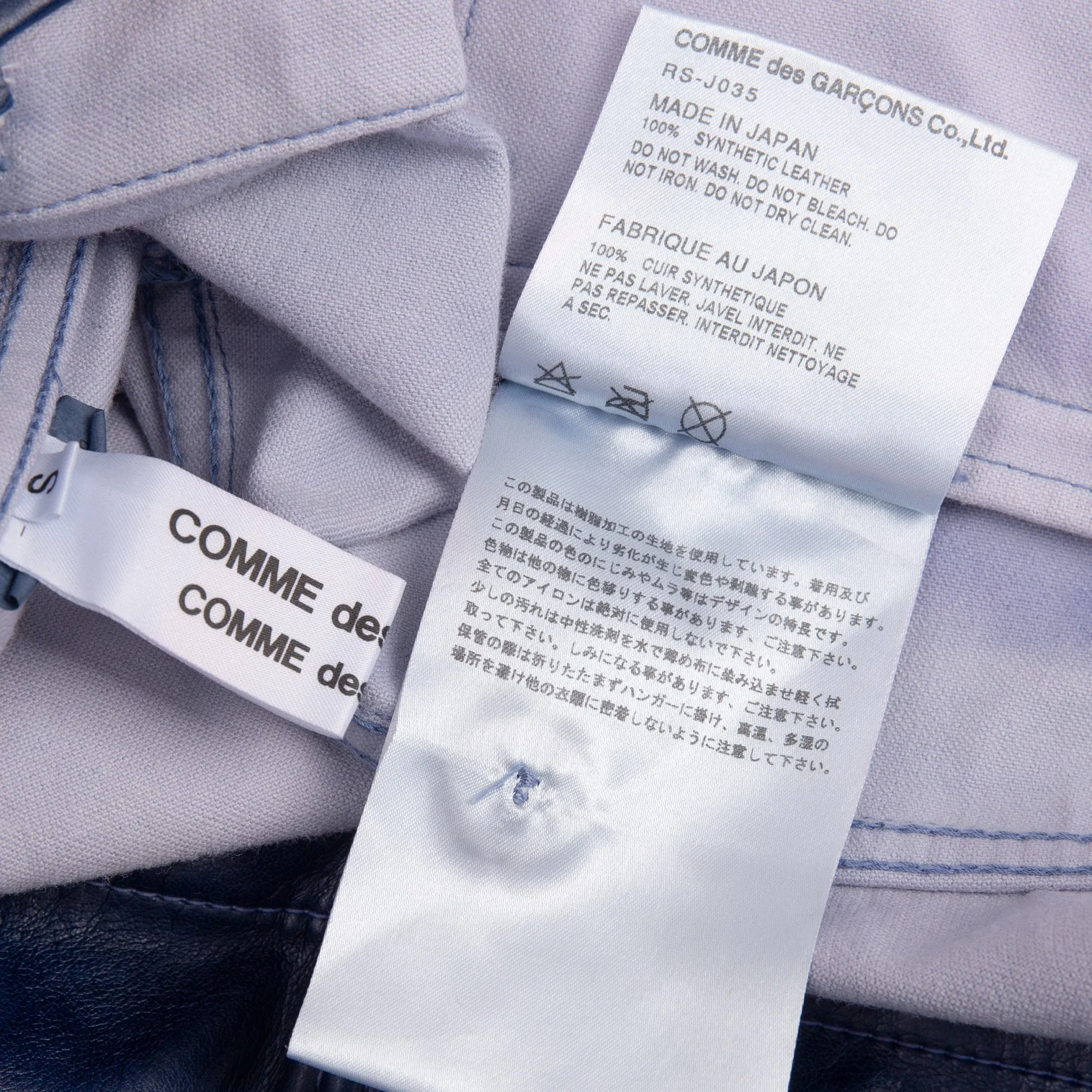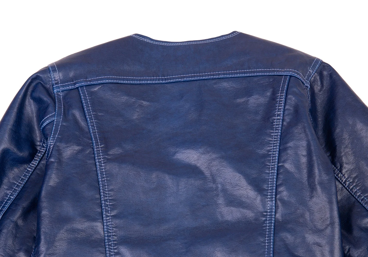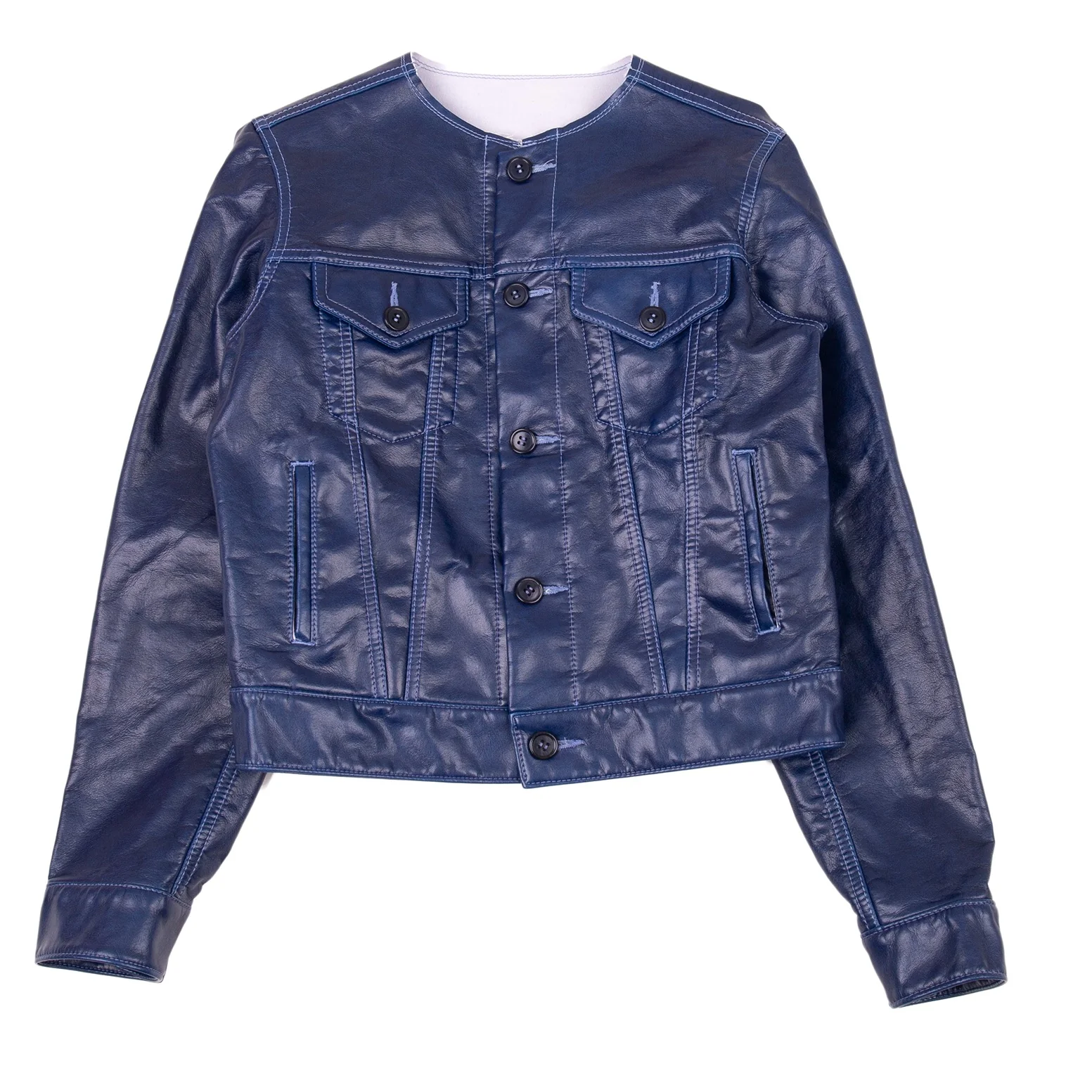 コムコム コムデギャルソンCOMME des GARCONS フェイクレザーノーカラートラックジャケット 青S