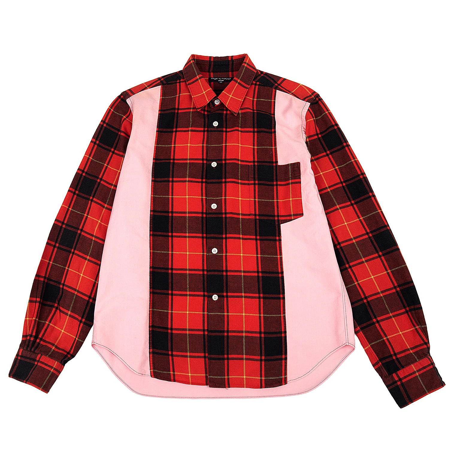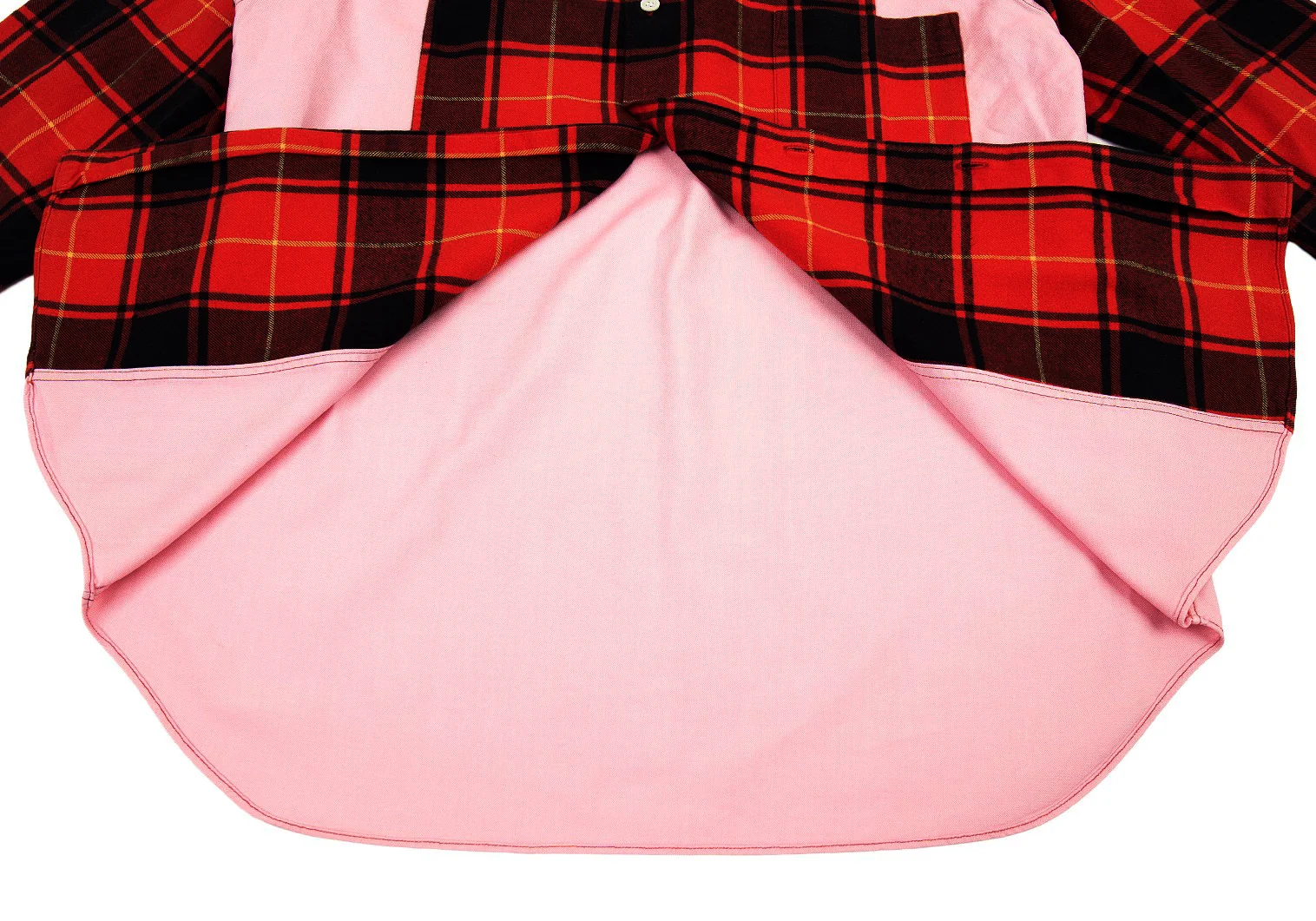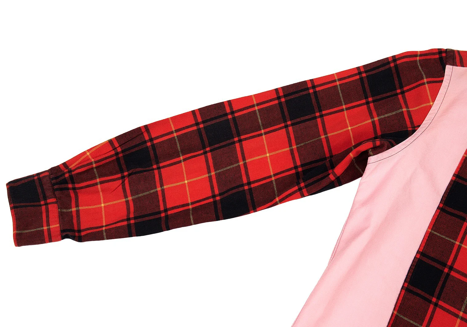 コムデギャルソン オムCOMME des GARCONS HOMME タータンチェック切替オックスフォードシャツ ピンク赤黒M