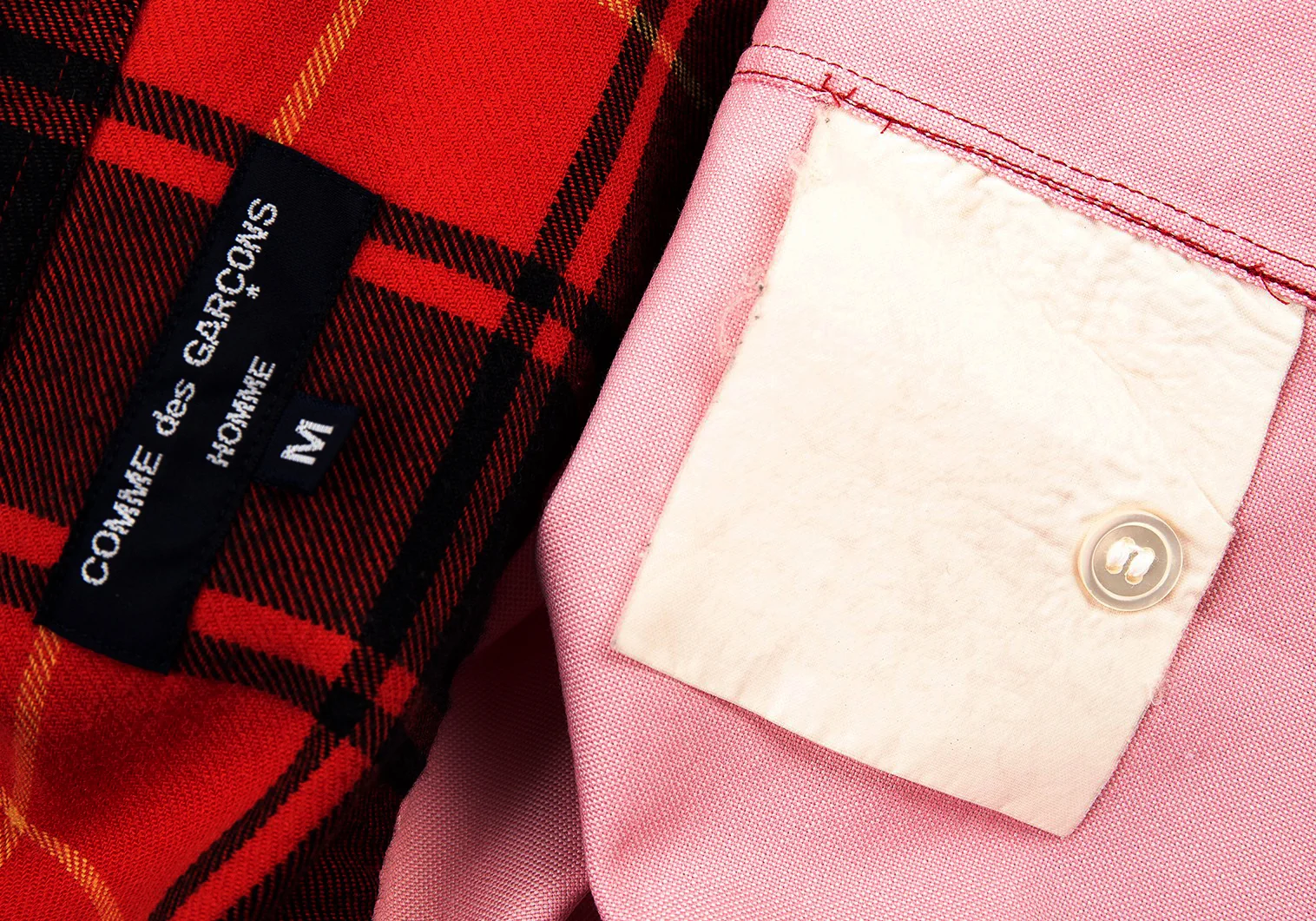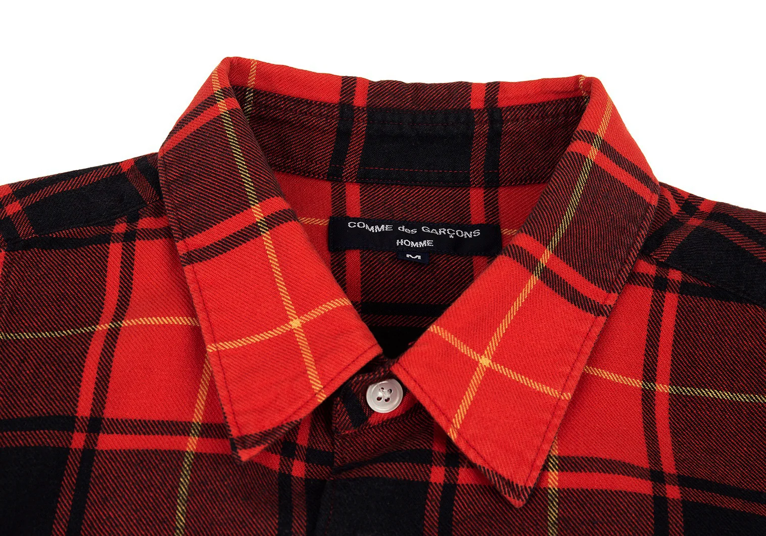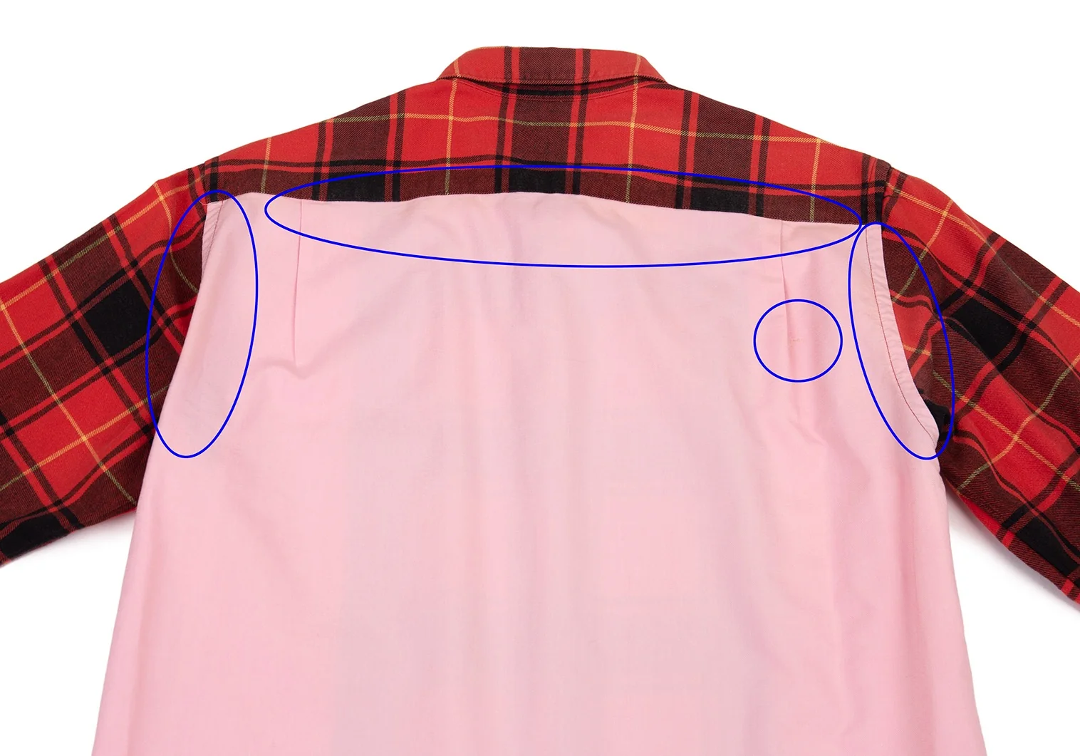 コムデギャルソン オムCOMME des GARCONS HOMME タータンチェック切替オックスフォードシャツ ピンク赤黒M