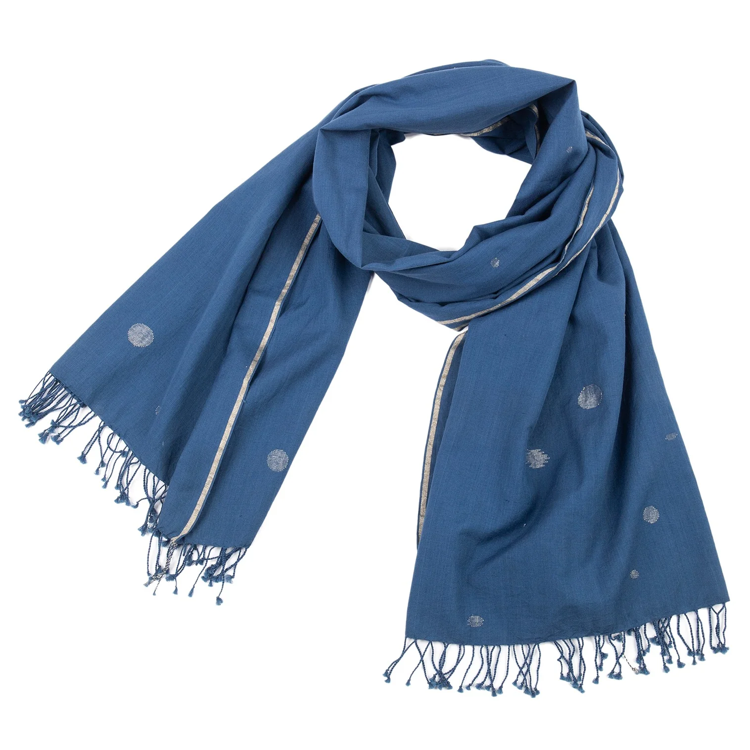 ヨーガンレール ババグーリJURGEN LEHL Babaghuri ドットフリンジストール 青