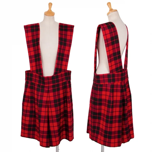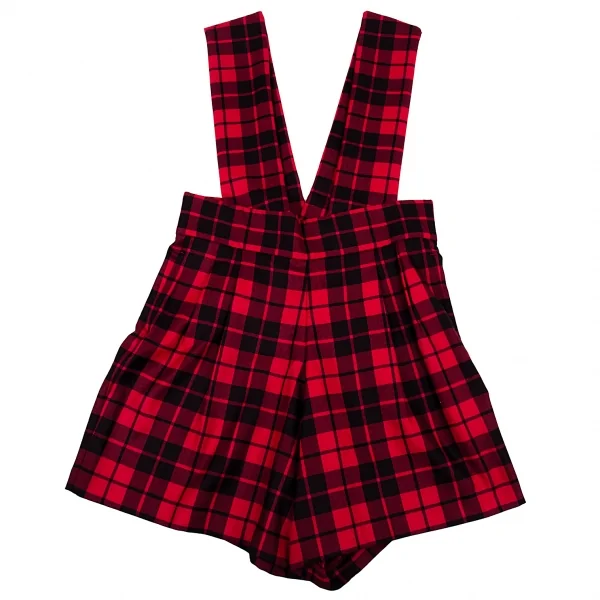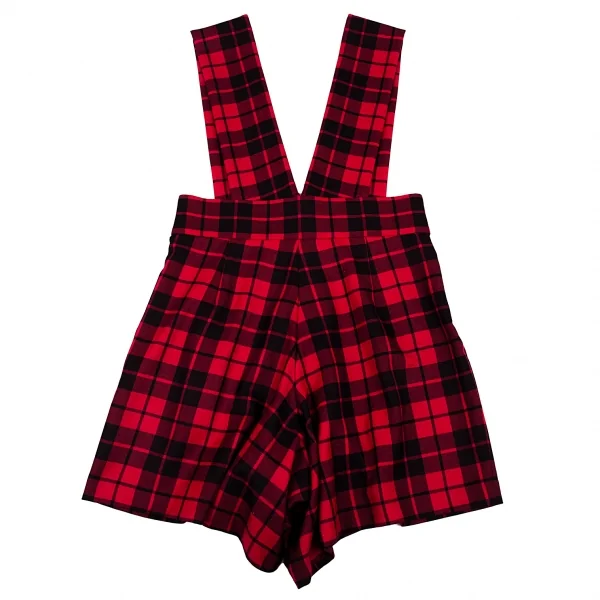 コムデギャルソンCOMME des GARCONS タータンチェックサスペンダーハーフパンツ 赤黒S