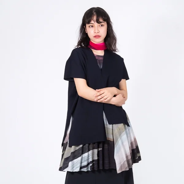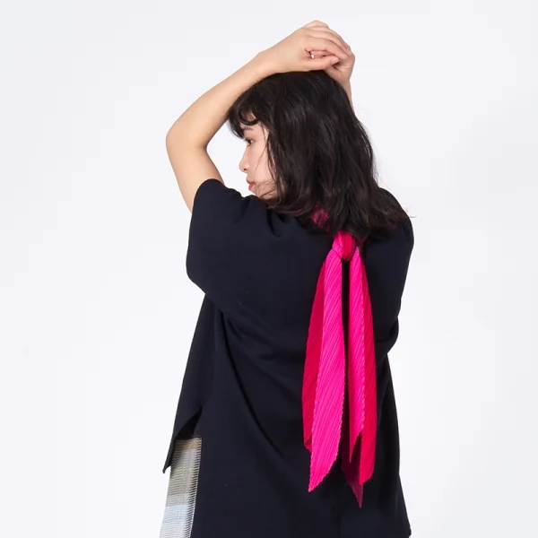 プリーツプリーズPLEATS PLEASE トリカラー切替プリーツストール ピンク赤紫