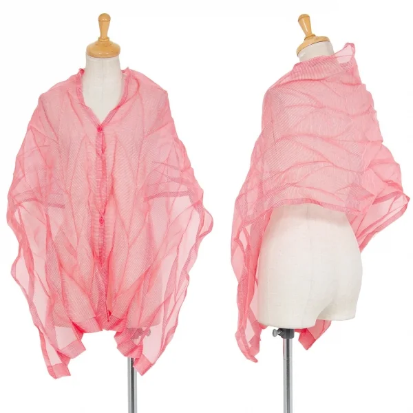 イッセイミヤケ ミーISSEY MIYAKE me シースルーボーダーショールストール ピンク白