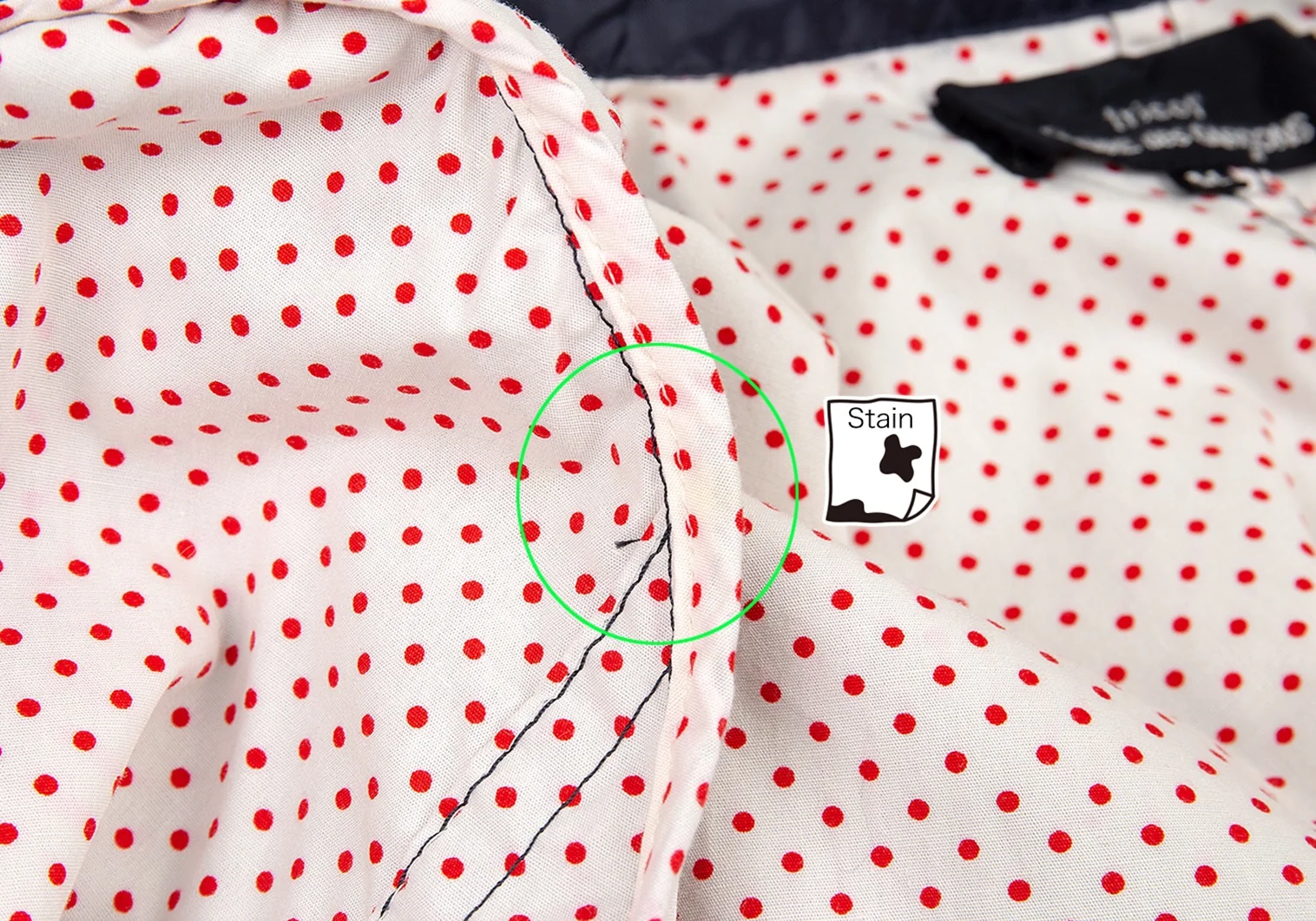 右脇裏に小シミがあります(画像参照)。その他目立ったシミ、汚れ、ほつれ等ありません。クリーニング済み