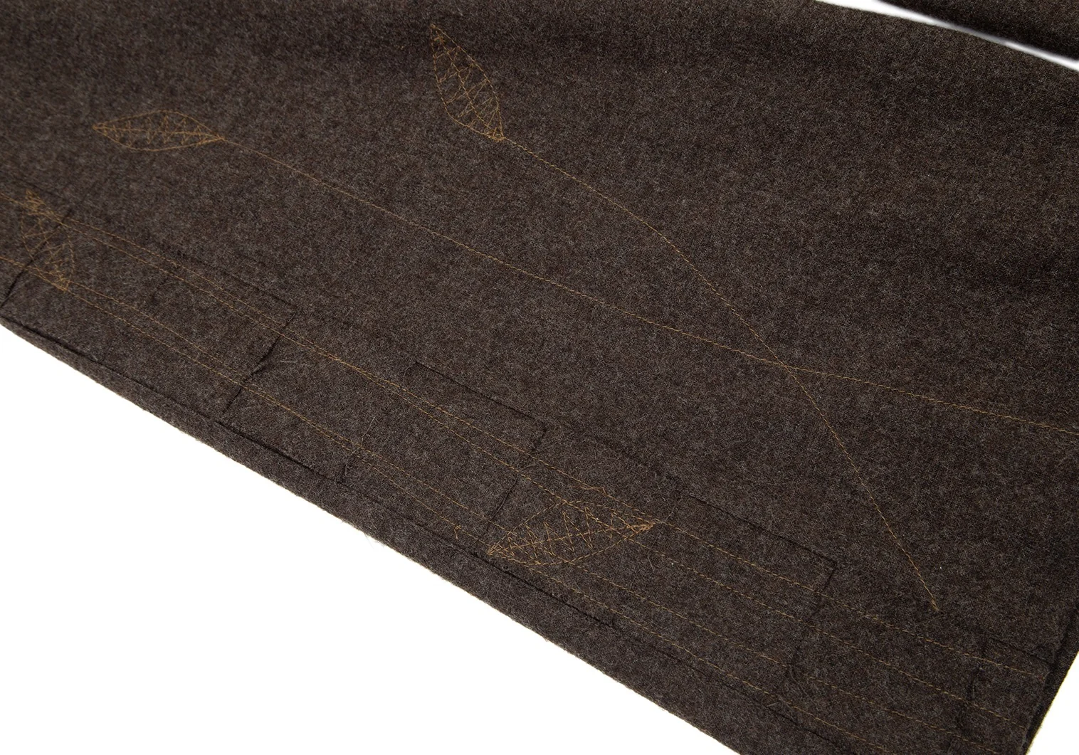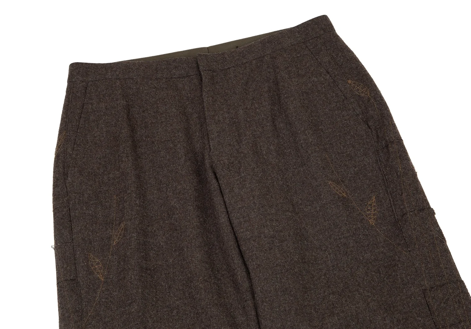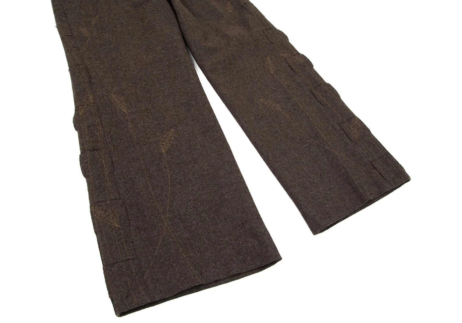 イッセイミヤケ ハートISSEY MIYAKE HaaT リーフステッチ刺繍サイド切替パンツ 茶3