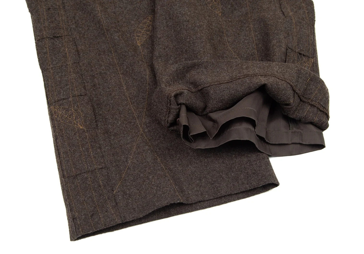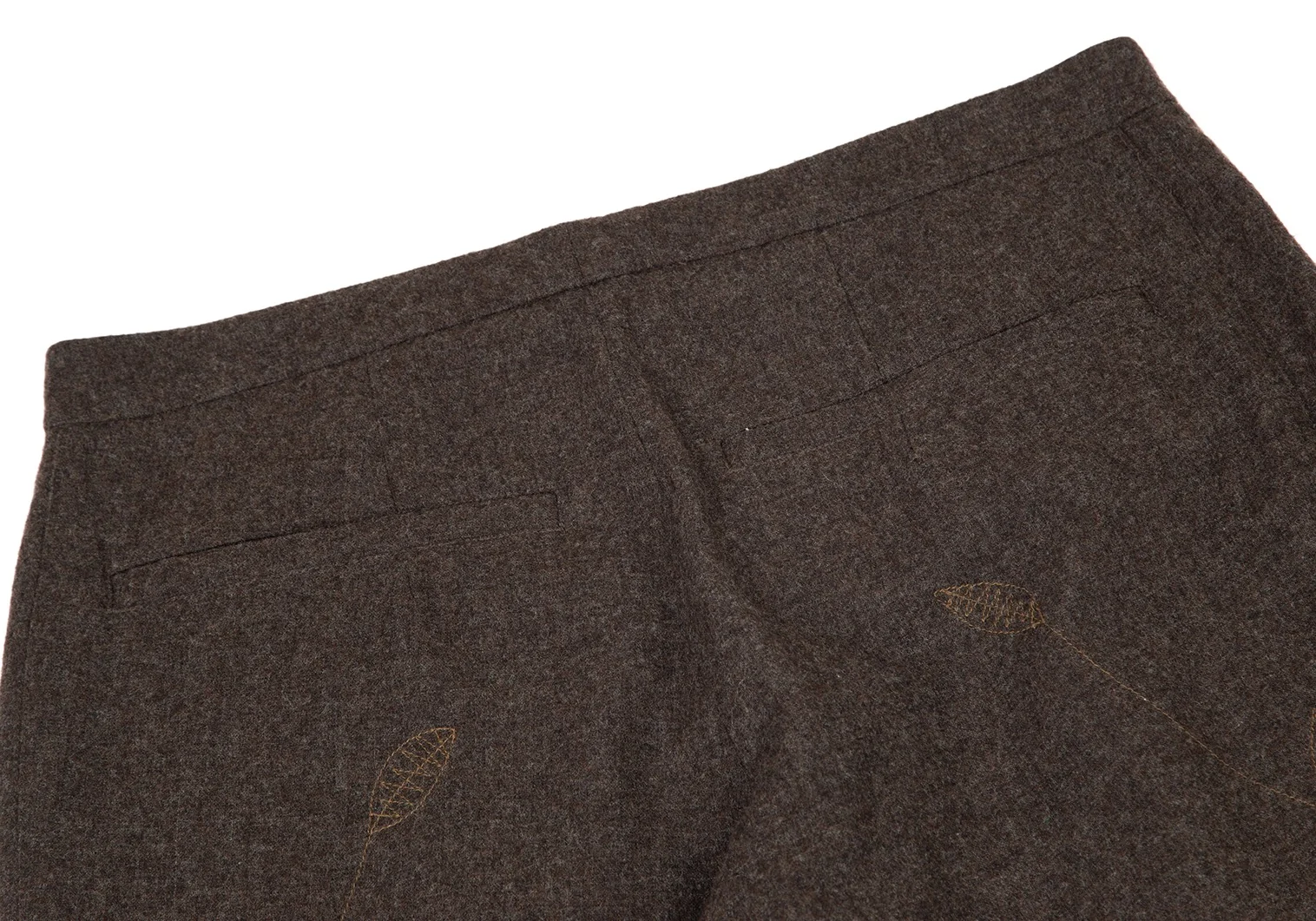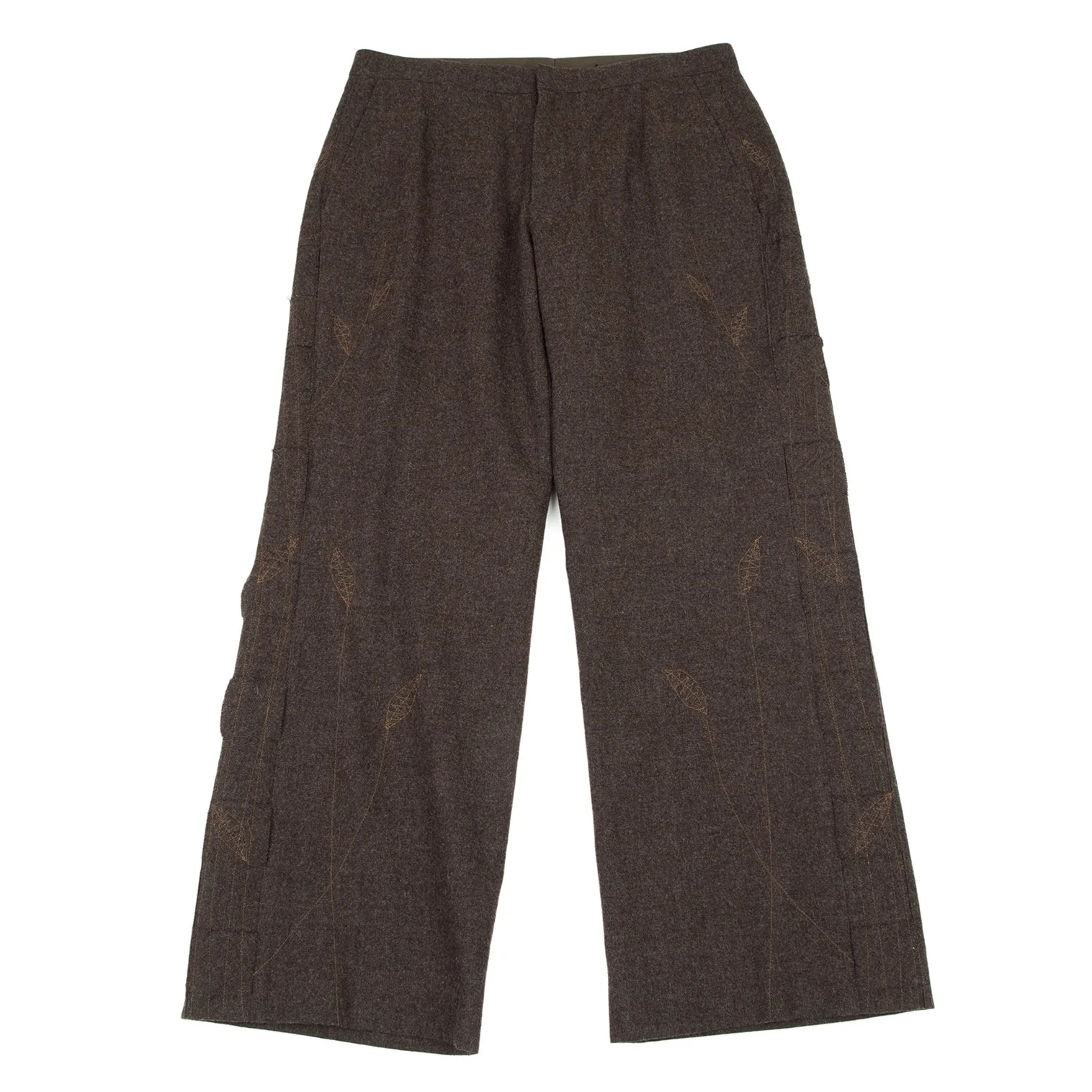 イッセイミヤケ ハートISSEY MIYAKE HaaT リーフステッチ刺繍サイド切替パンツ 茶3