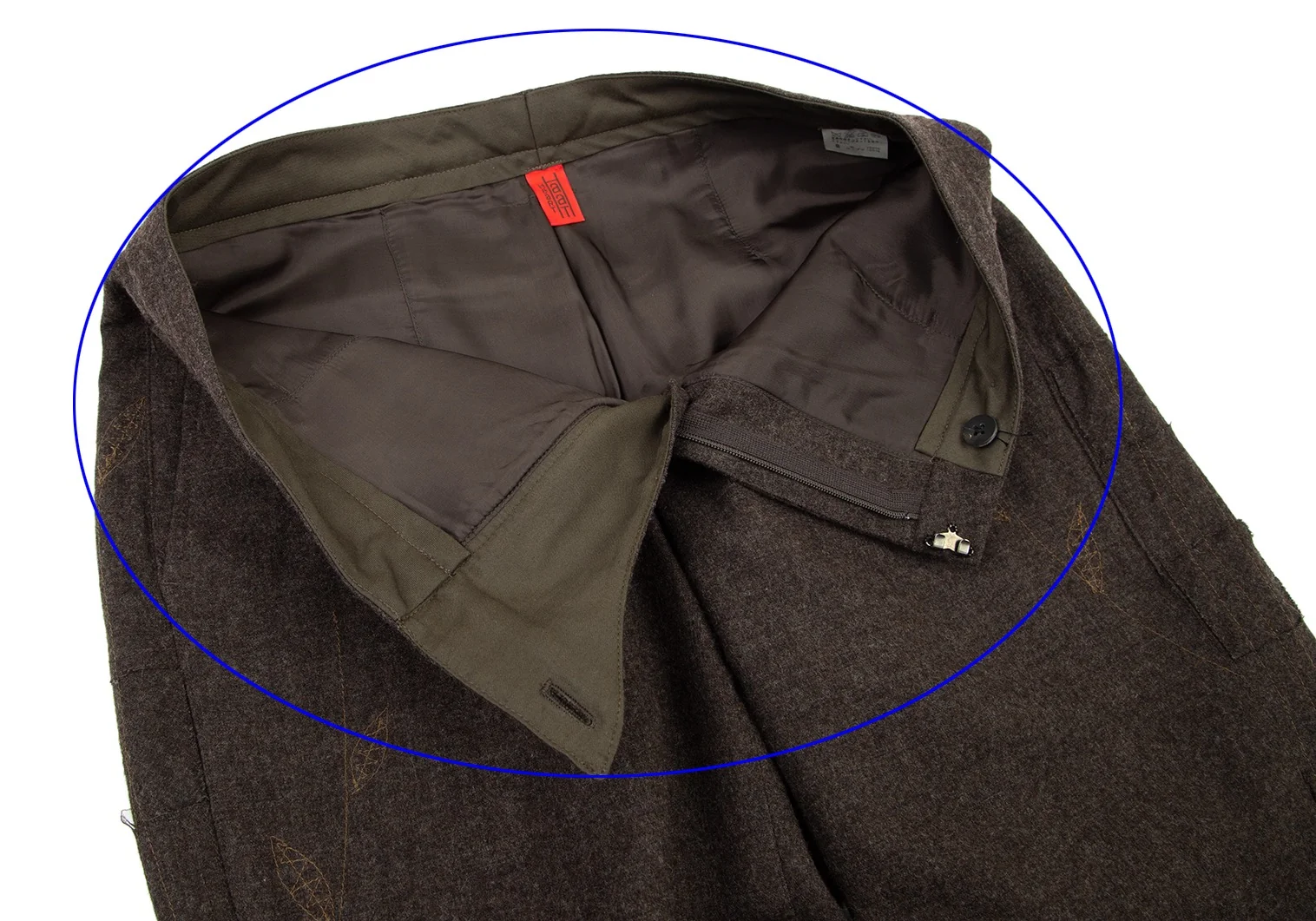 ウエスト裏の裏地にダメージがあります(画像参照)。その他目立ったシミ、汚れ、ほつれ等なくいい状態です。クリーニング済み
