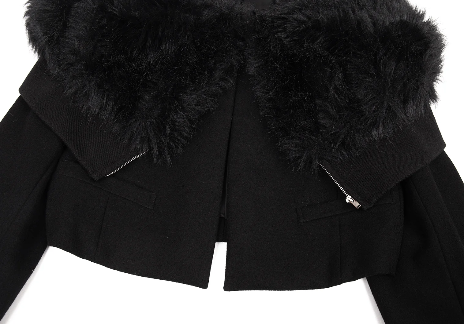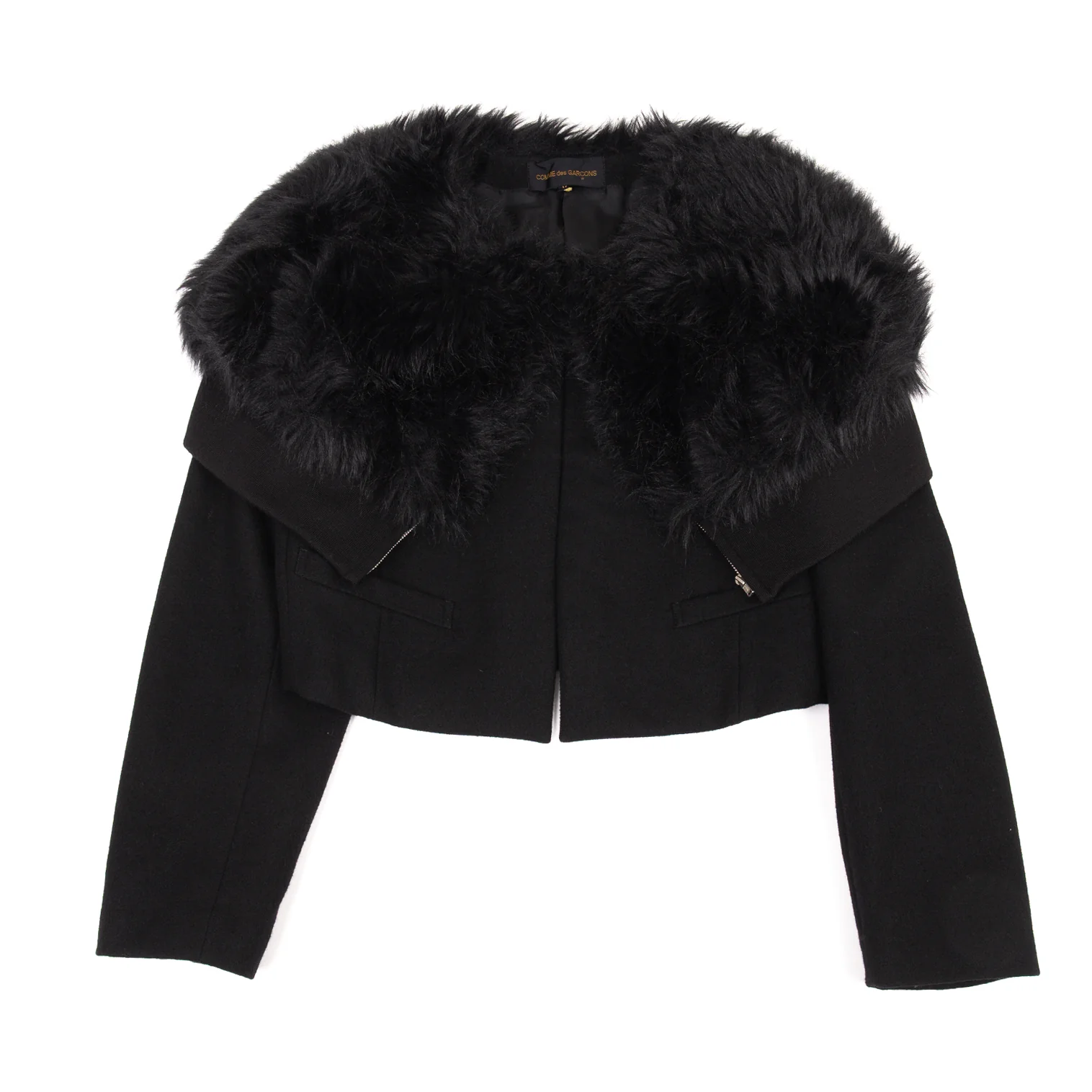 コムデギャルソンCOMME des GARCONSファー襟ドッキングショートジャケット 黒M