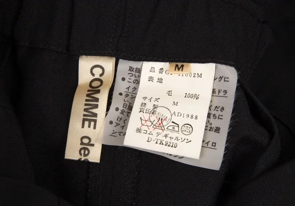 コムデギャルソンCOMME des GARCONSウールギャバ裾リングベルトパンツ 黒M