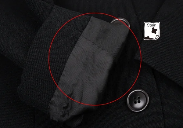 肩パッドあり。右袖裏に薄シミがあります(写真参照)。その他に目立ったシミ、汚れ、ほつれ等なくいい状態です。クリーニング済み