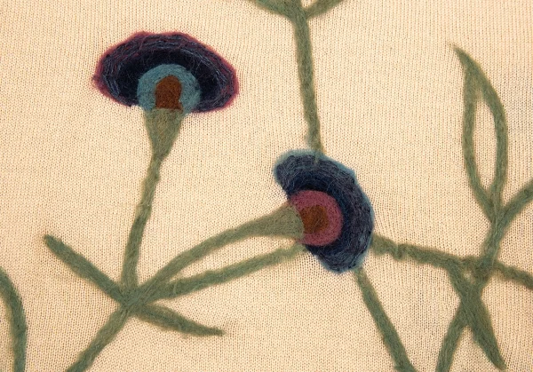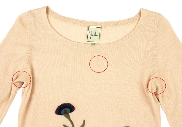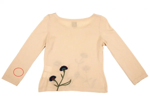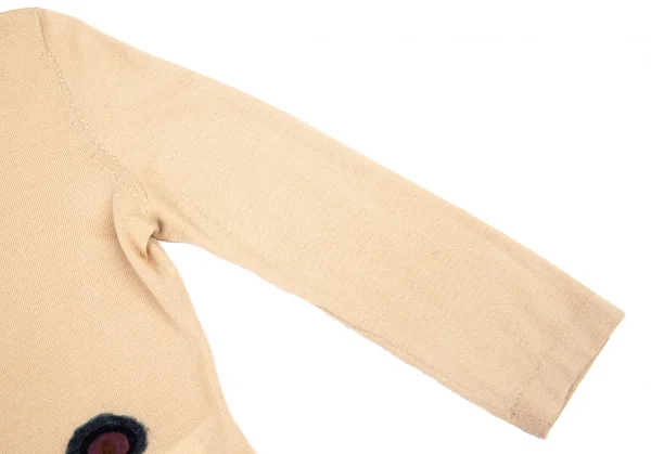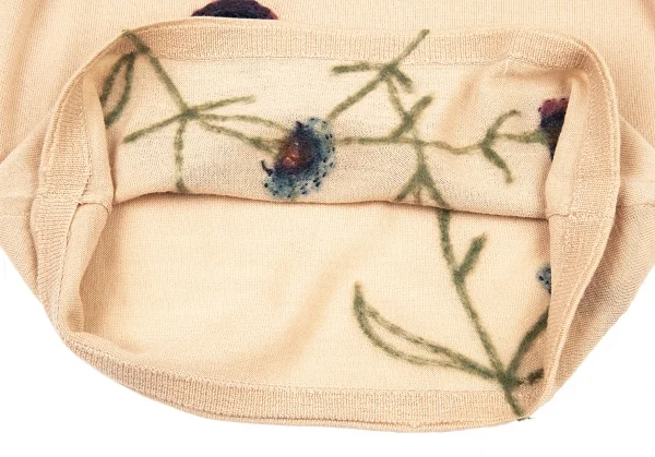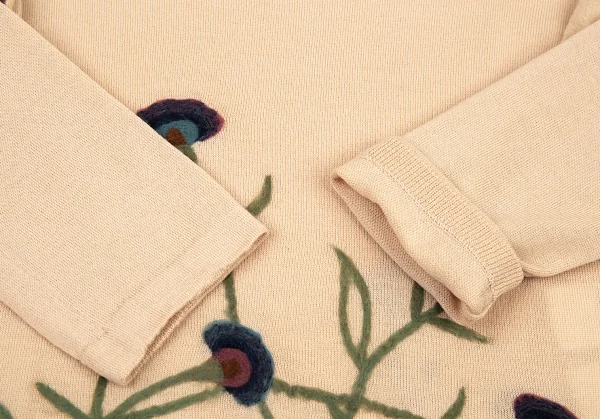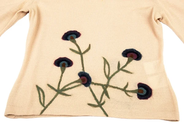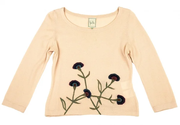 シビラSybilla フェルトフラワー刺繍ニットソー ベージュL