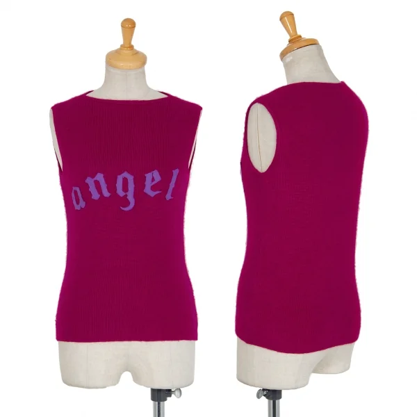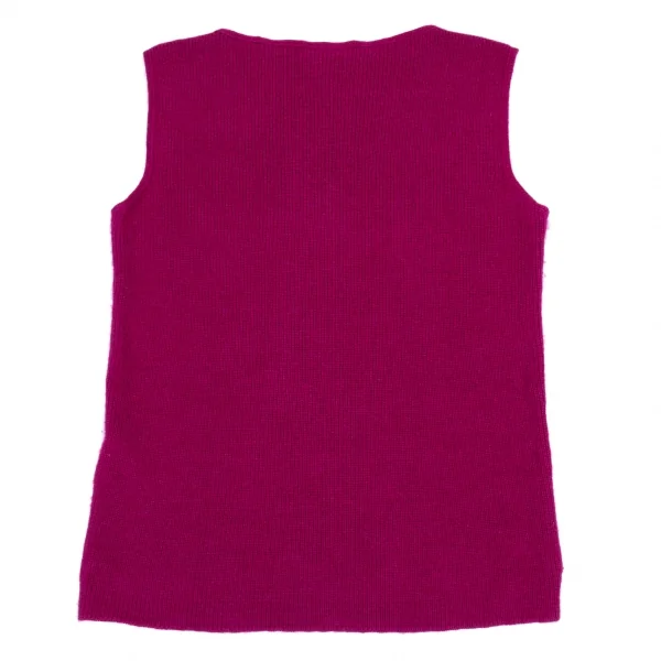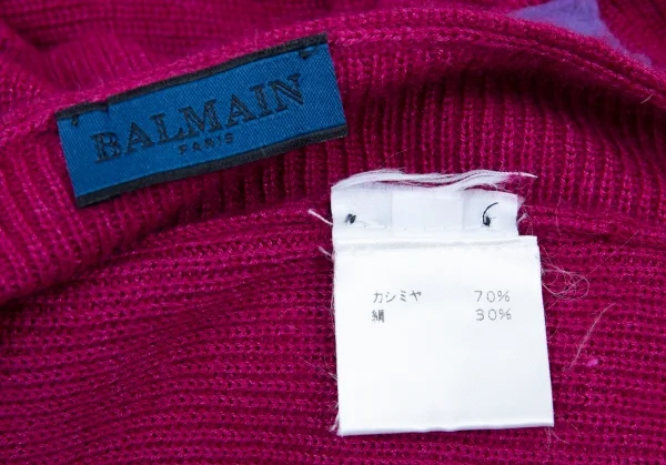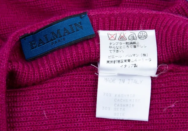 バルマンBALMAIN カシミヤシルクフェルトパッチノースリーブニット 紫S