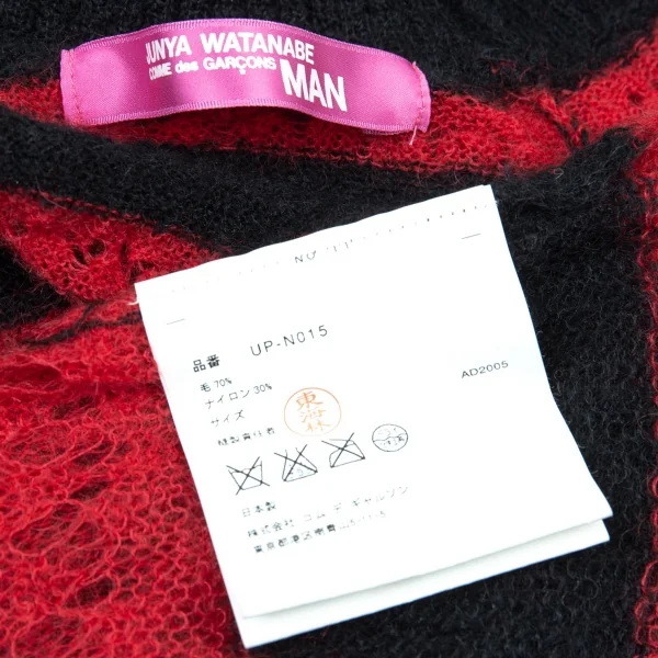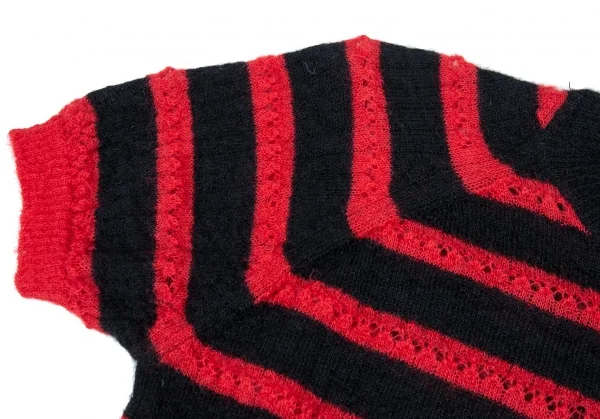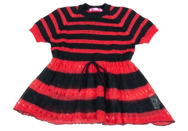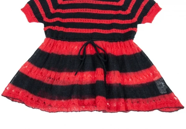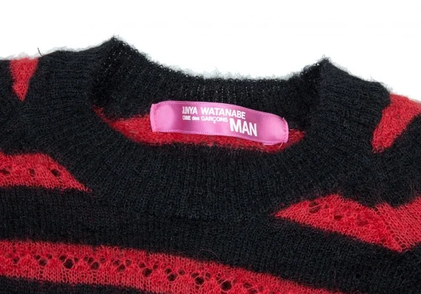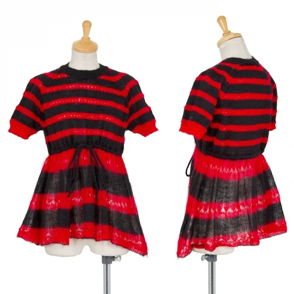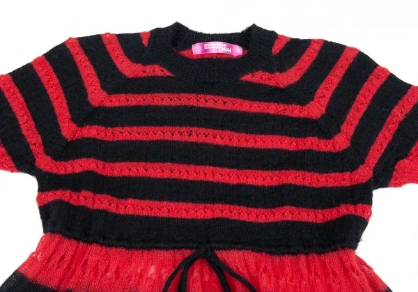 ジュンヤワタナベマンピンク コムデギャルソンJUNYA WATANABE MAN PINK COMME des GARCONS ダメージボーダーニットチュニック 赤黒S位