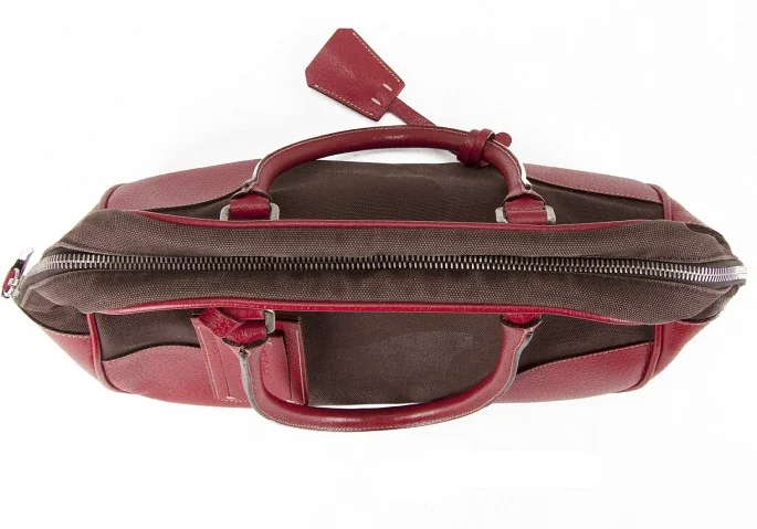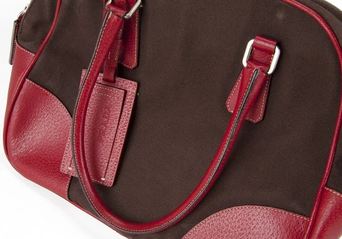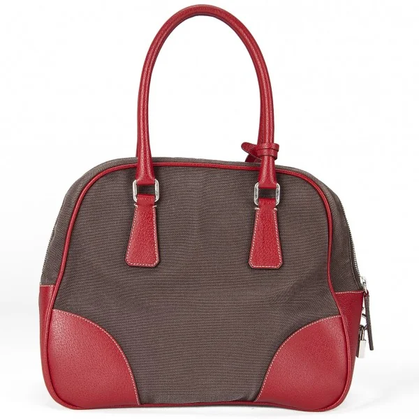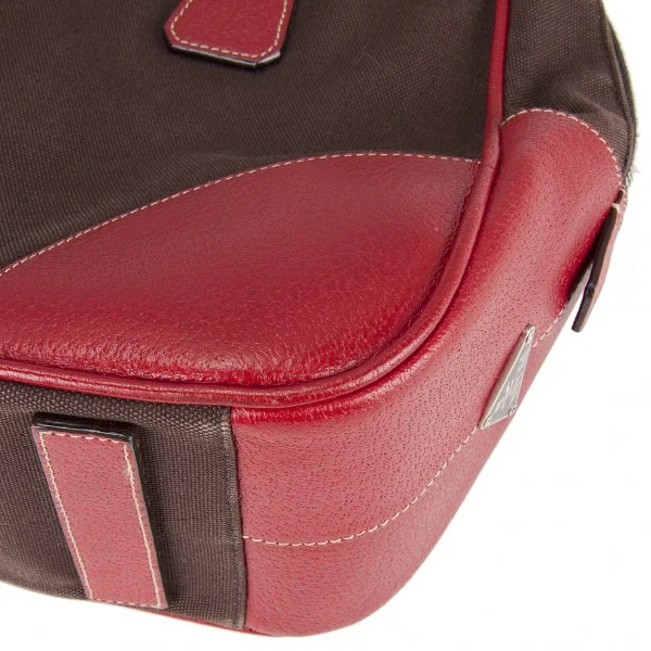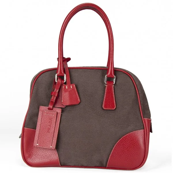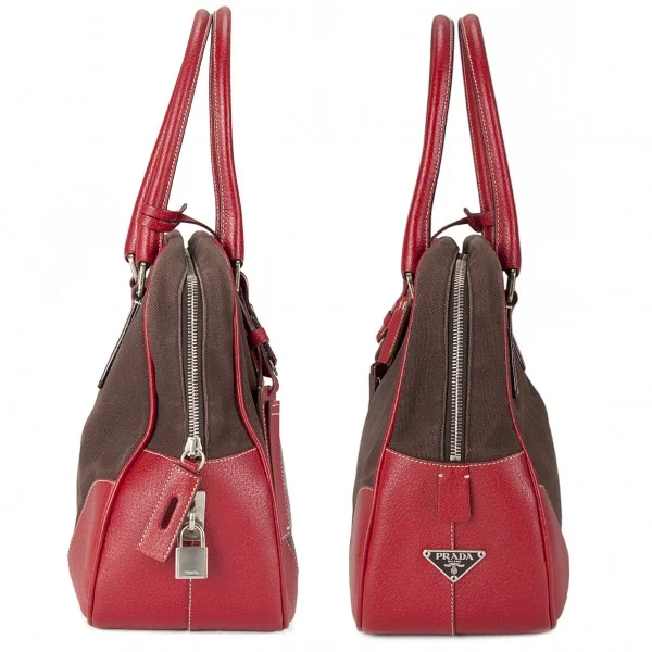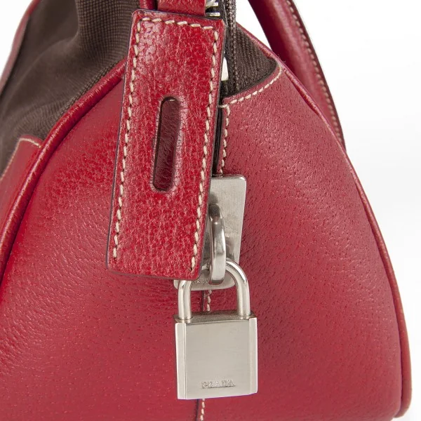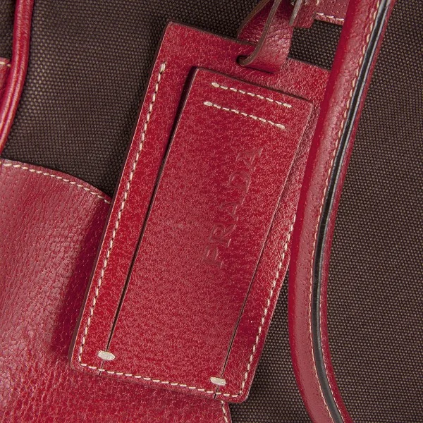 プラダPRADA キャンバス×レザーミニボストンバッグ 赤茶