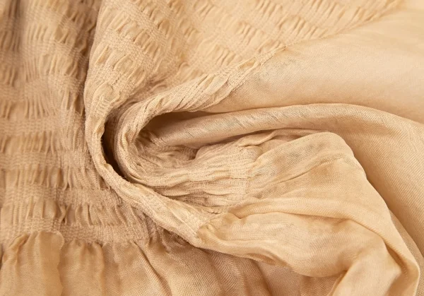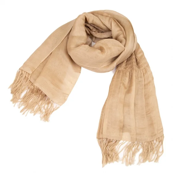 イッセイミヤケ ホワイトレーベルISSEY MIYAKE WHITE LABEL シルクポリプリーツ切替フリンジストール ゴールド