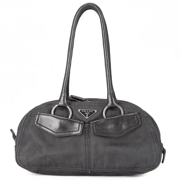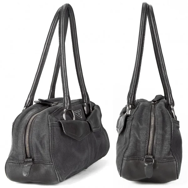 プラダPRADA デニム×レザーバッグ 黒