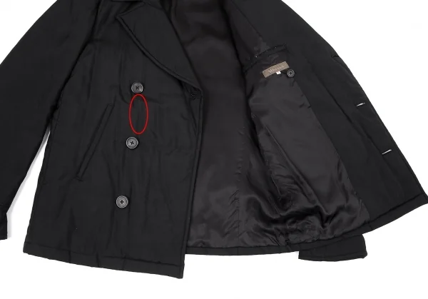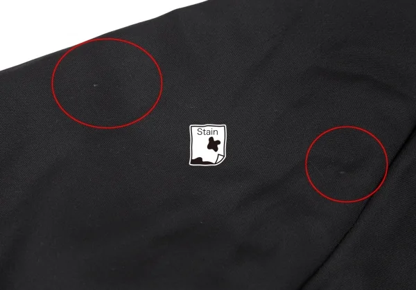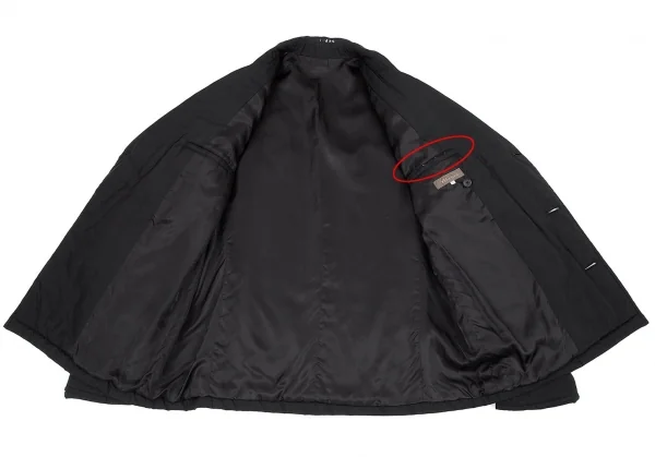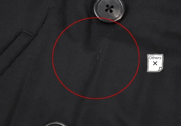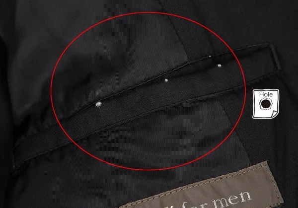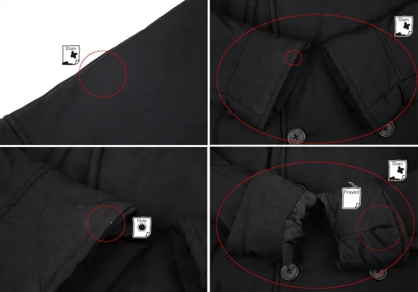 右袖・袖先裏に薄汚れ、首元・右袖先・裾先・内ポケット・後裾に擦り切れ、左袖裏にほつれ、前身頃に織りムラがあります。(画像参照)。その他目立ったシミ、汚れ、ほつれ等ありません。クリーニング済み