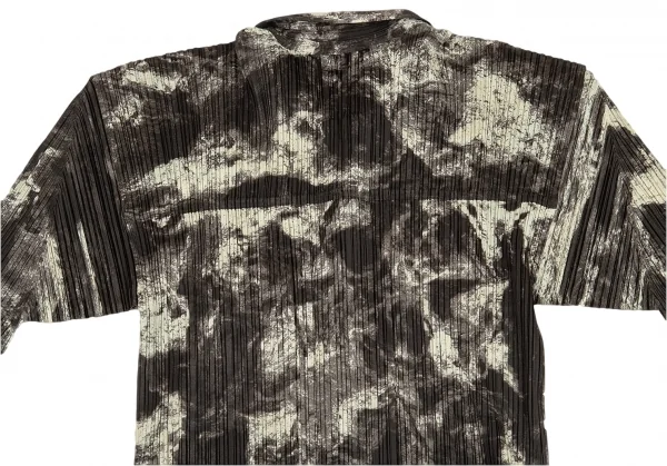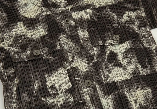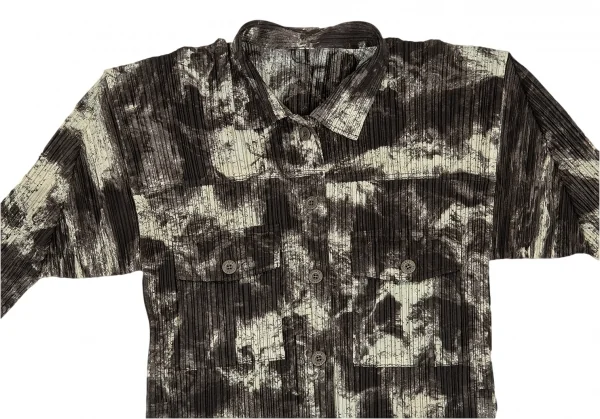 プリーツプリーズPLEATS PLEASE マーブルプリントポケットデザインジャケット 黒茶4