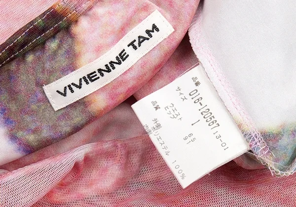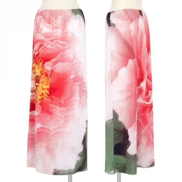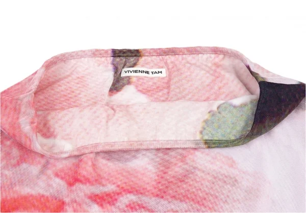 ヴィヴィアンタムVIVIENNETAM フラワープリントパワーネットレイヤードマキシスカート 白ピンク1