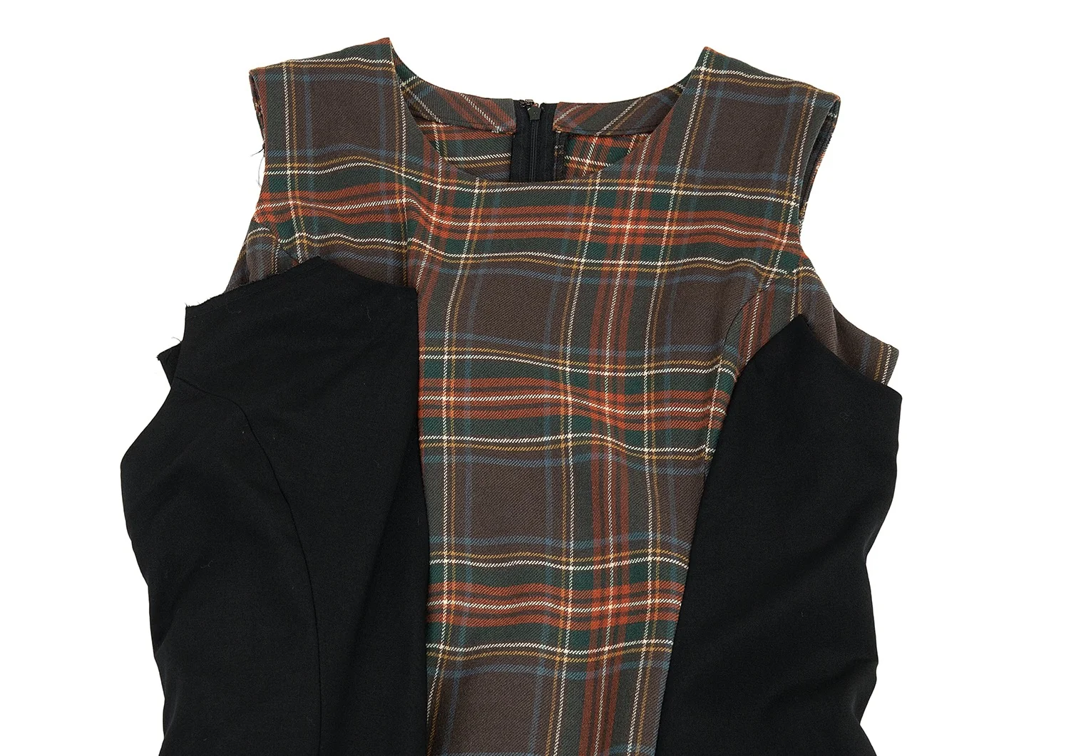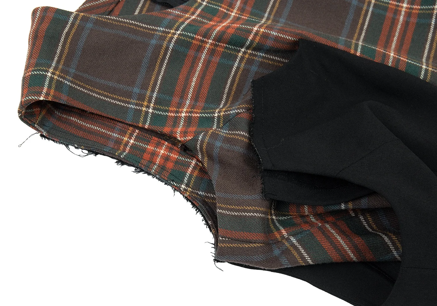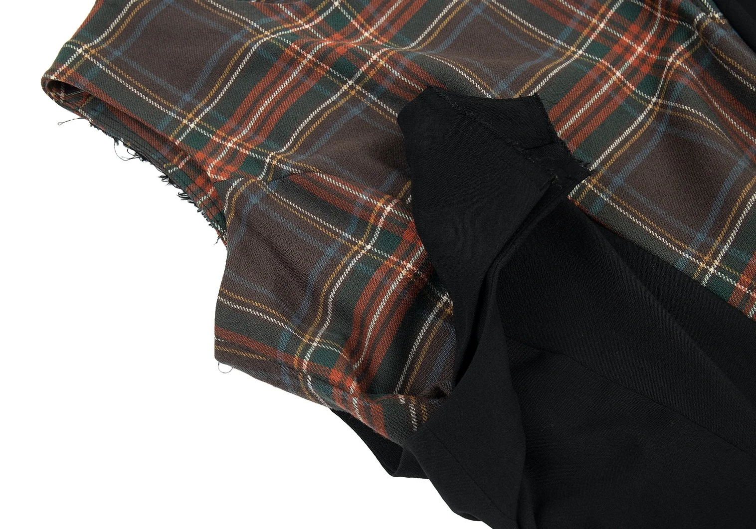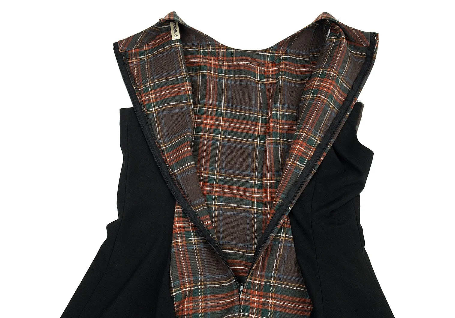 コムデギャルソンCOMME des GARCONS タータンチェックアシンメトリー切替ノーカラーワンピース グレー他黒S位