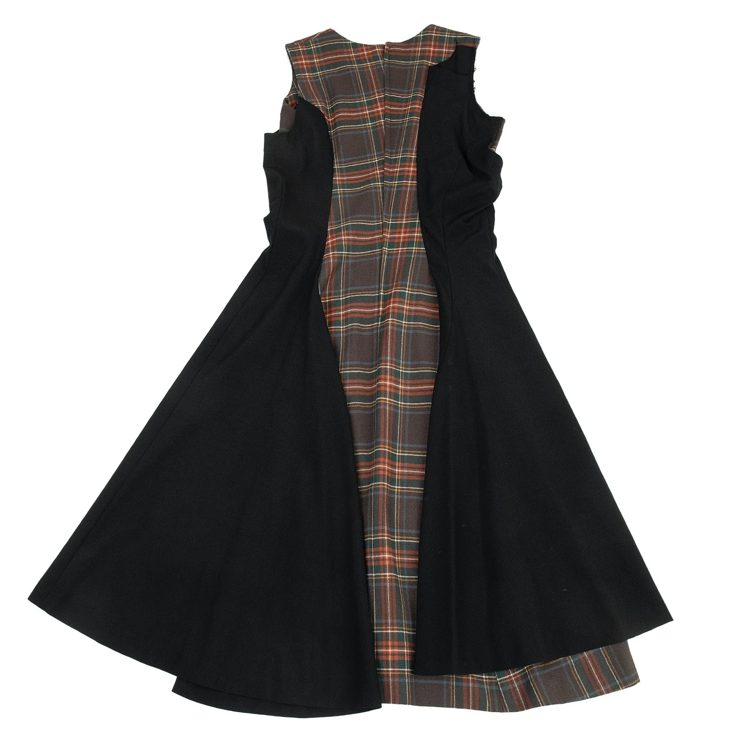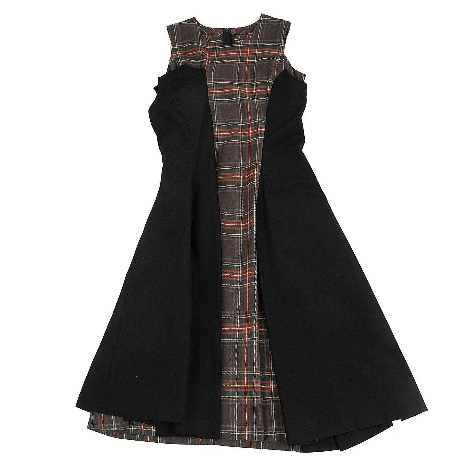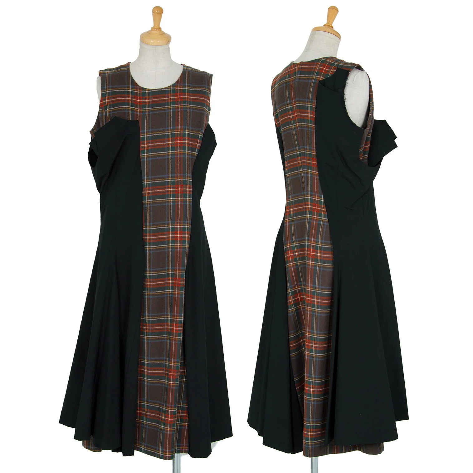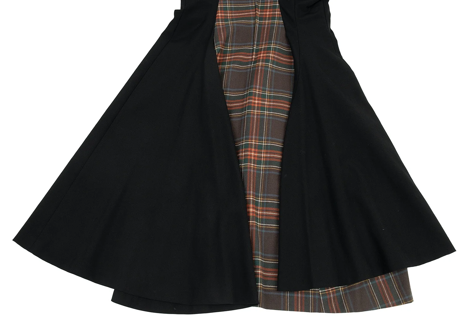 コムデギャルソンCOMME des GARCONS タータンチェックアシンメトリー切替ノーカラーワンピース グレー他黒S位