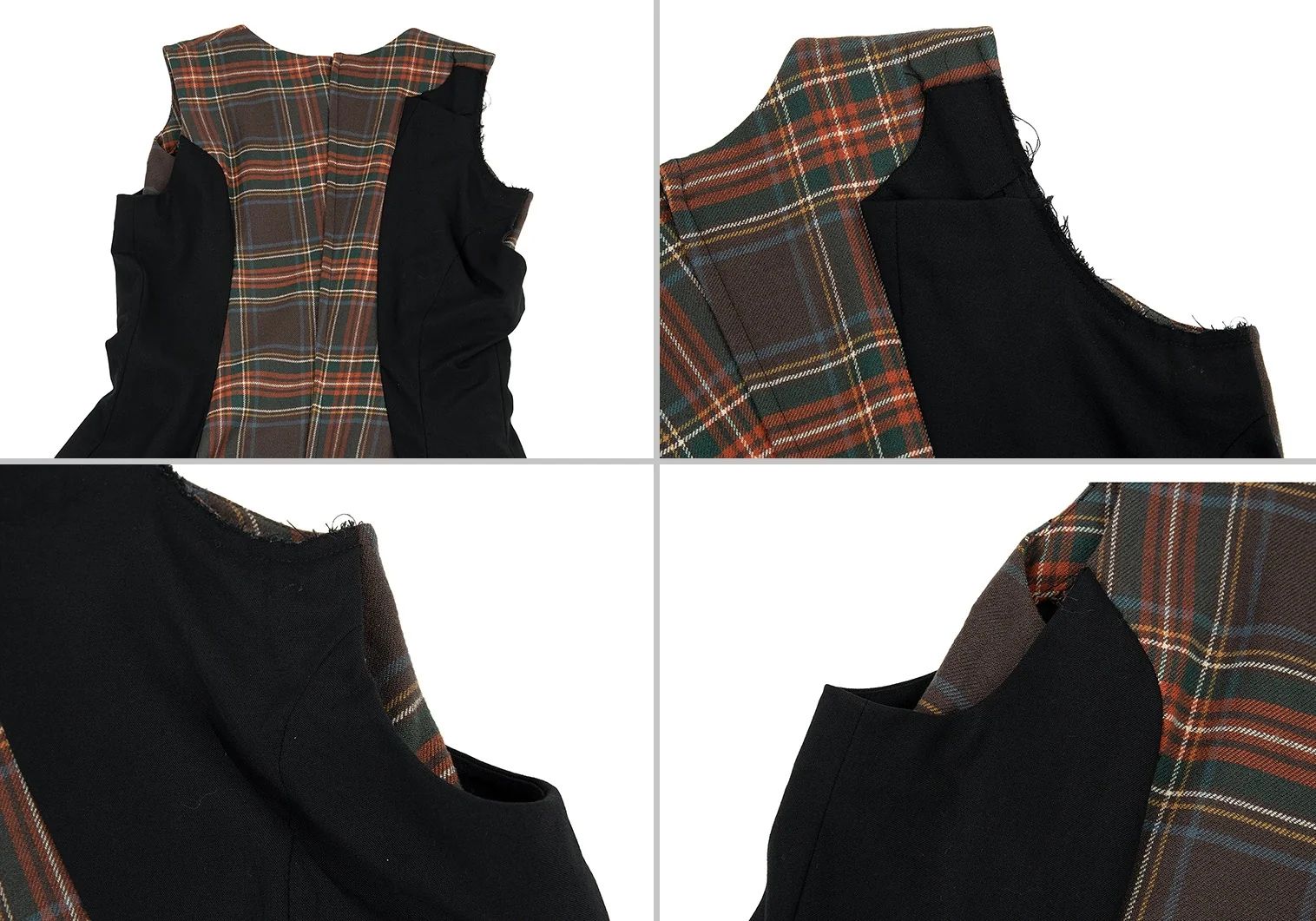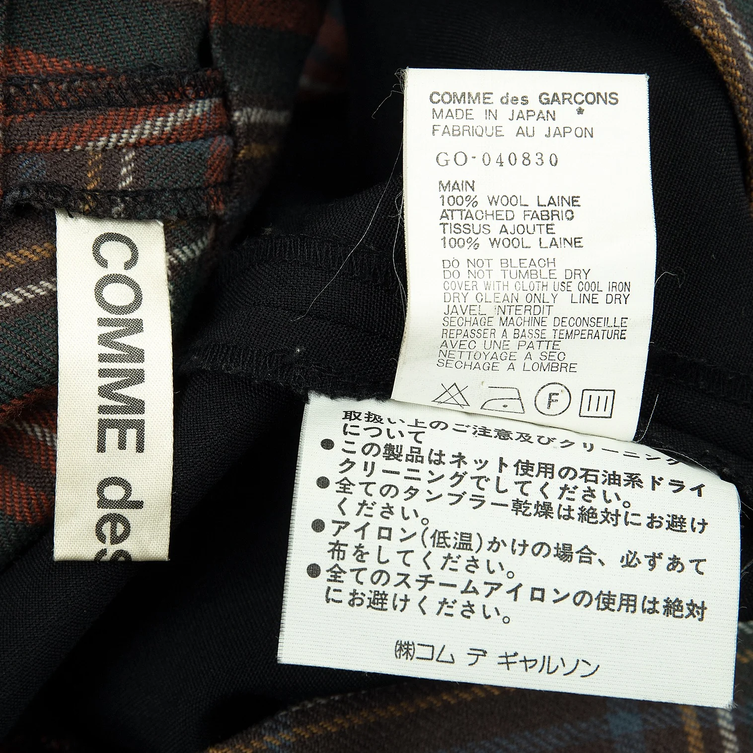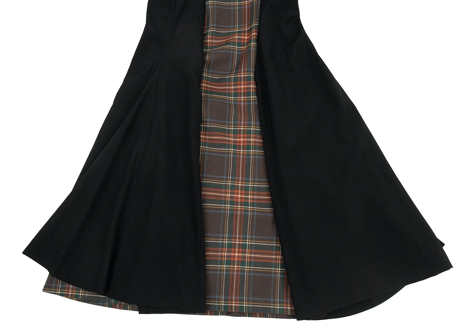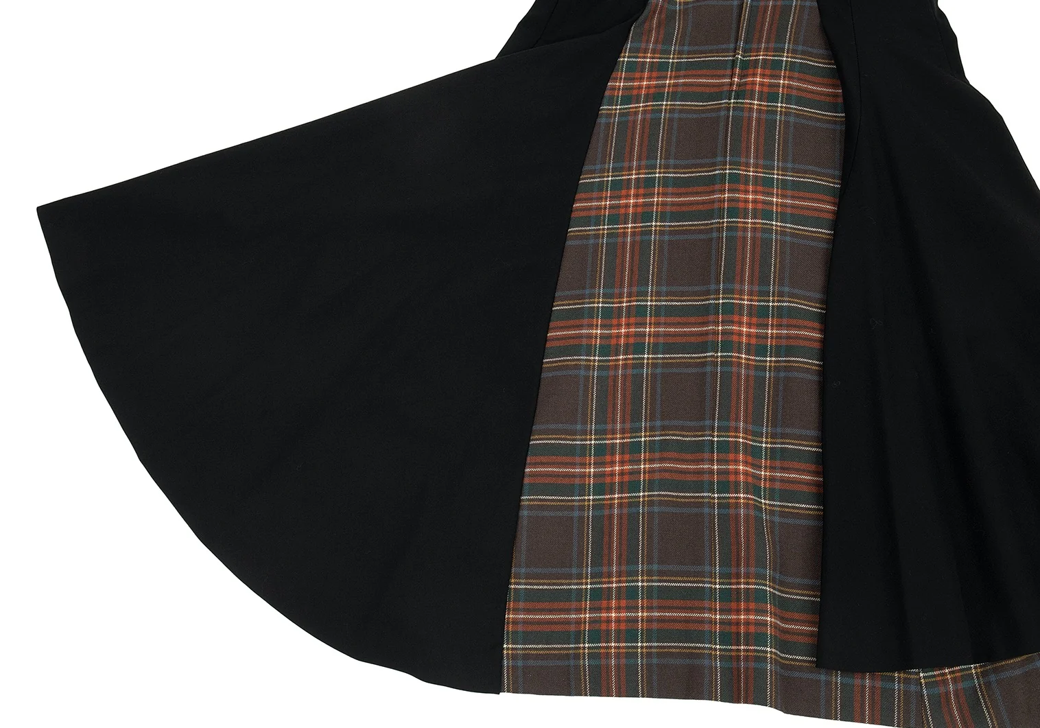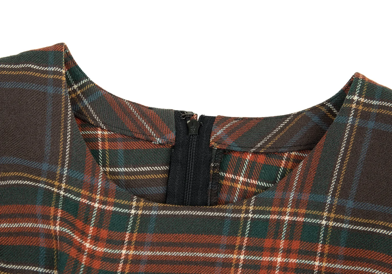 コムデギャルソンCOMME des GARCONS タータンチェックアシンメトリー切替ノーカラーワンピース グレー他黒S位