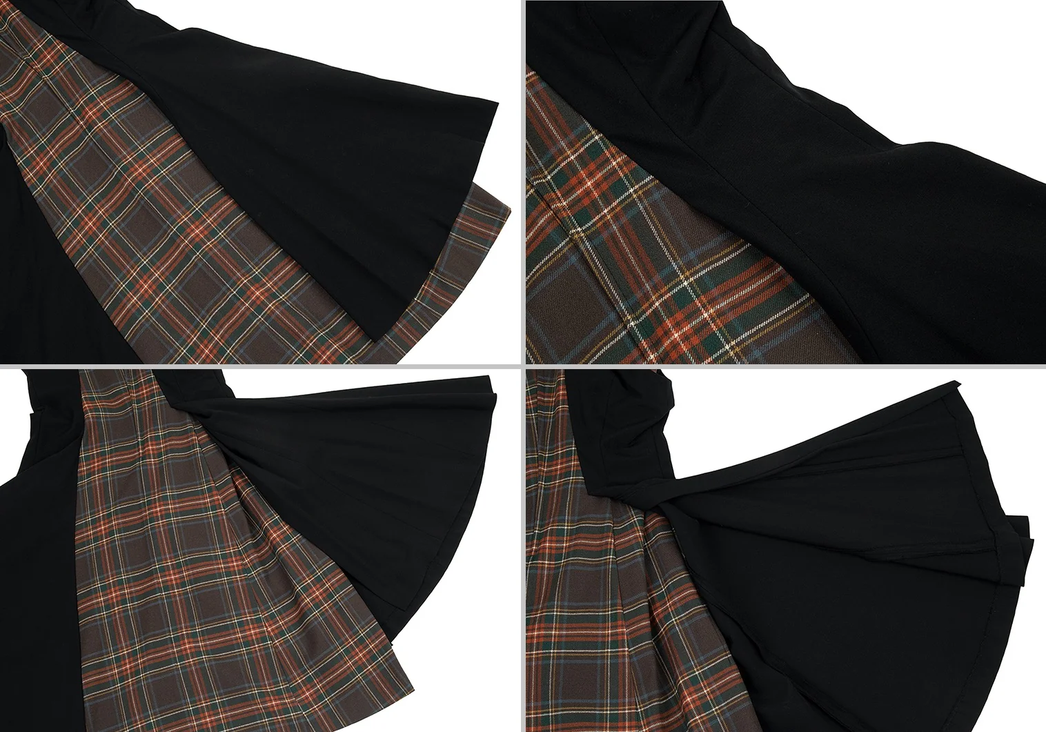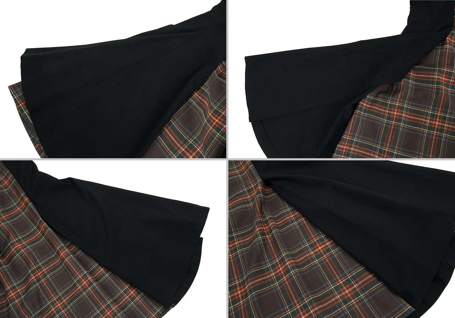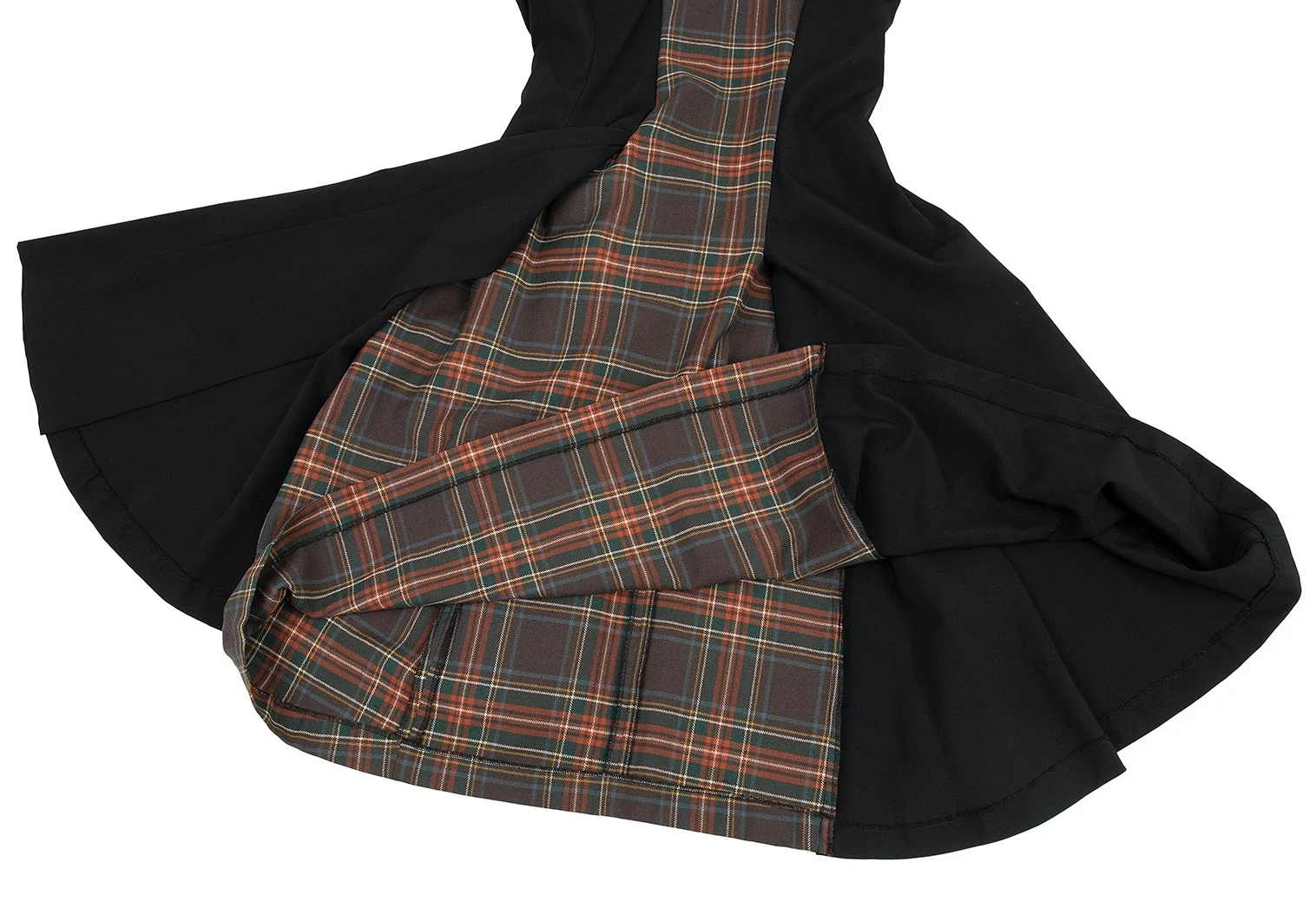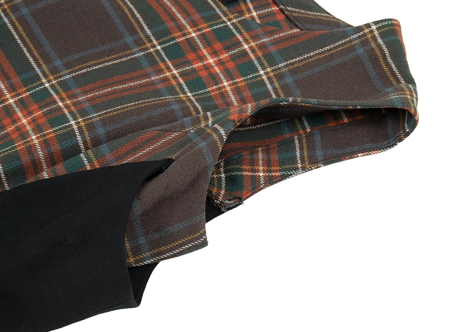 コムデギャルソンCOMME des GARCONS タータンチェックアシンメトリー切替ノーカラーワンピース グレー他黒S位