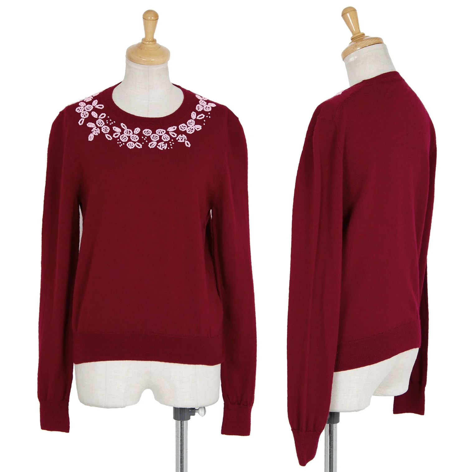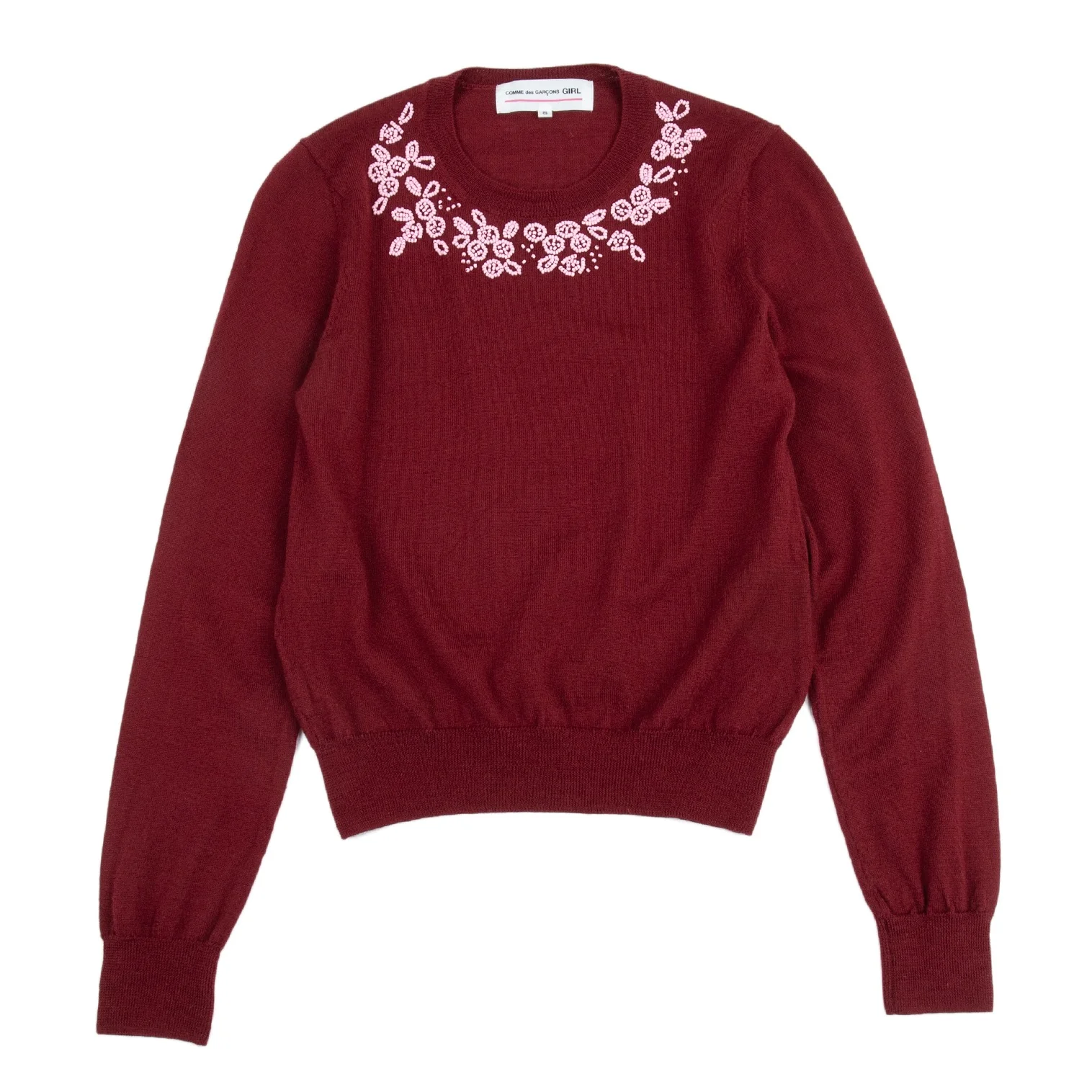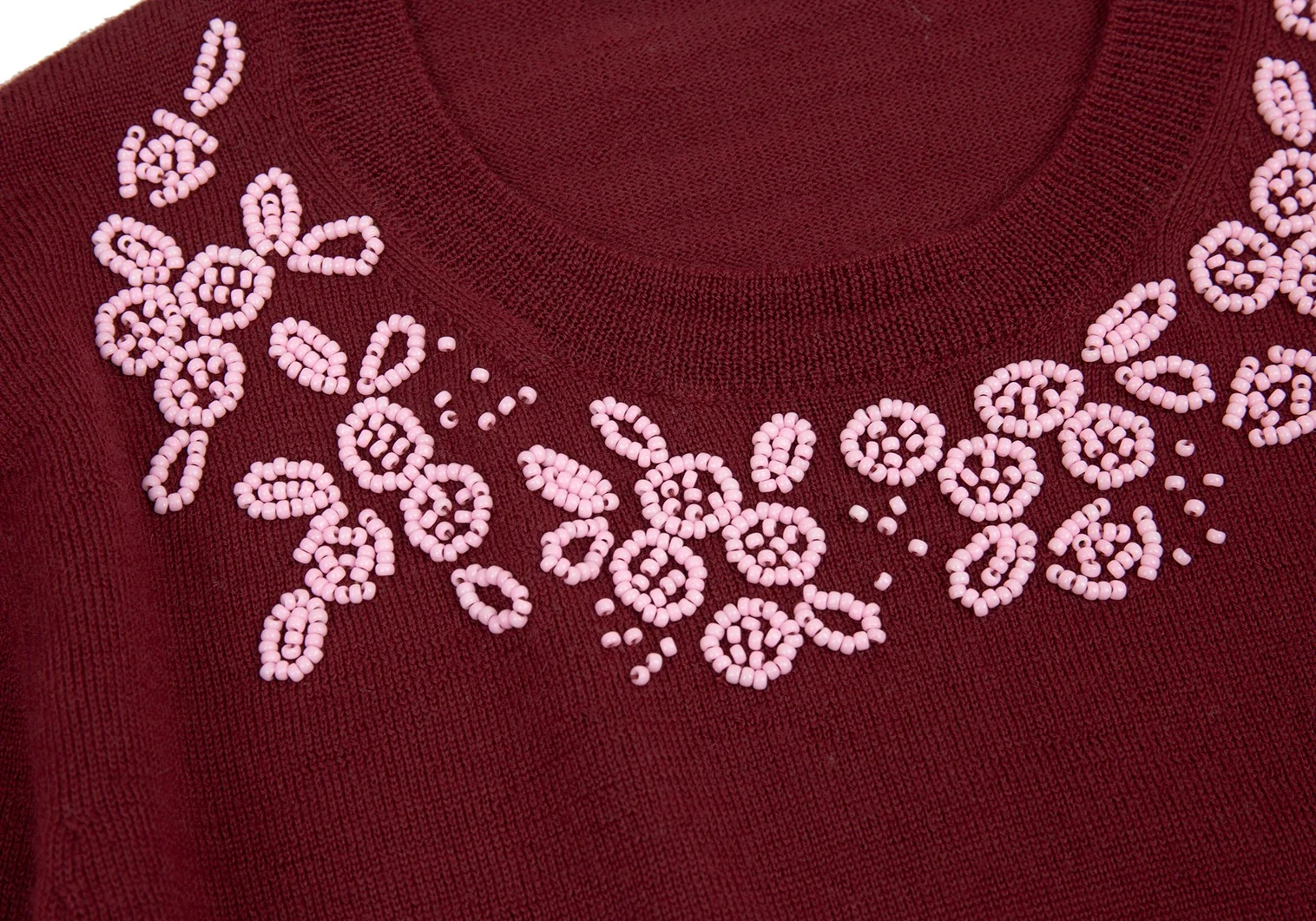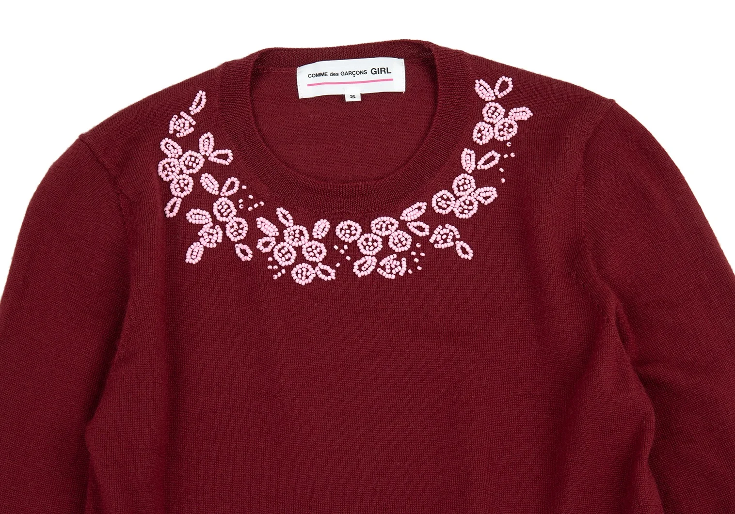 コムデギャルソン ガールCOMME des GARCONS GIRL デコルテビーズ装飾クルーネックニット ボルドーS