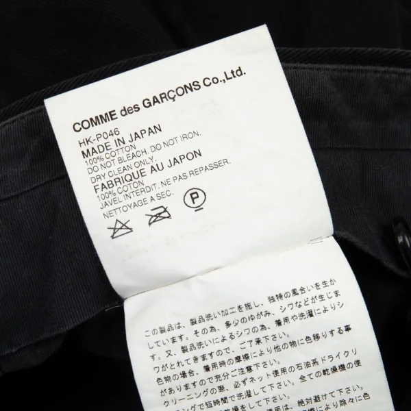 コムデギャルソン オムCOMME des GARCONS HOMME 洗い加工コットンツイルツータックパンツ 黒M