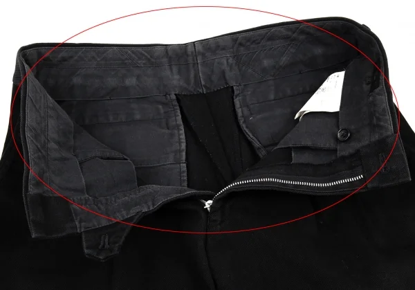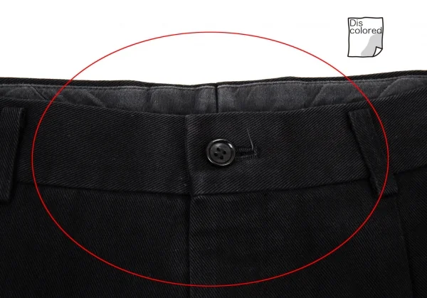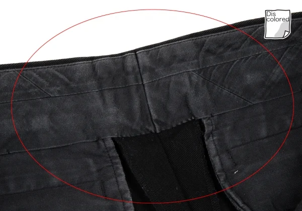 品質表示タグにネーム書き込みがあります。全体に着用感、ウエスト周りに色褪せ、後ろ右足裾に汚れがあります(画像参照)。その他目立ったシミ、汚れ、ほつれ等ありません。クリーニング済み