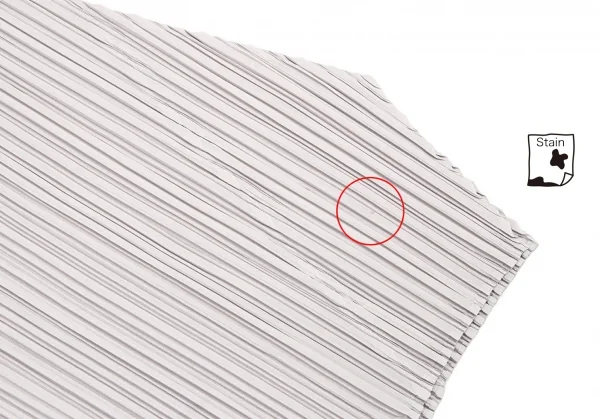 少し透け感のある生地です。裾先に薄汚れがあります(画像参照)。その他目立ったシミ、汚れ、ほつれ等なくいい状態です。クリーニング済み