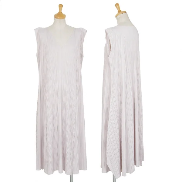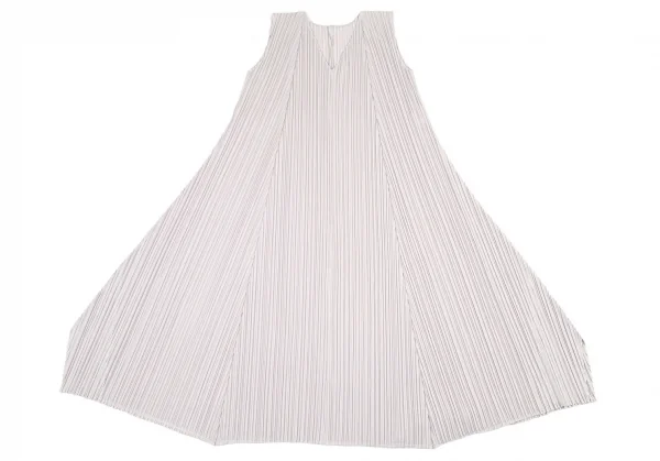 プリーツプリーズPLEATS PLEASE プリーツフレアシルエットノースリーブワンピース ライトグレー2