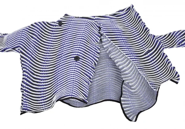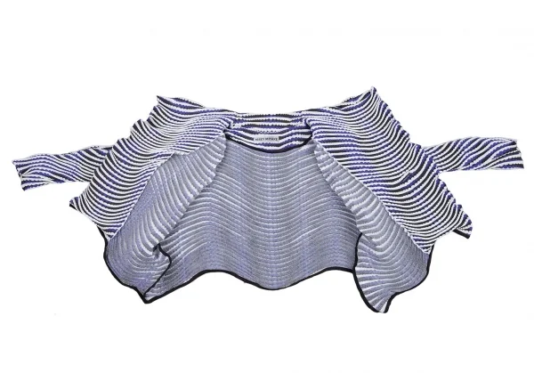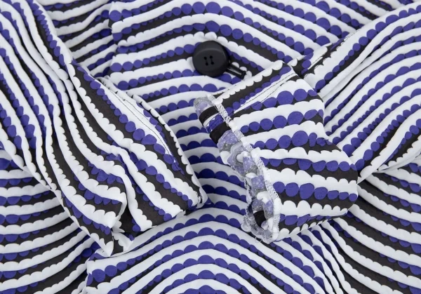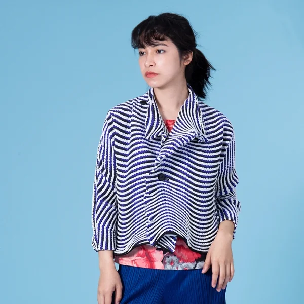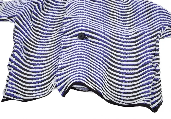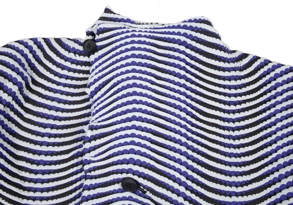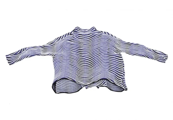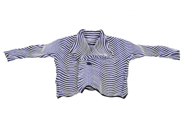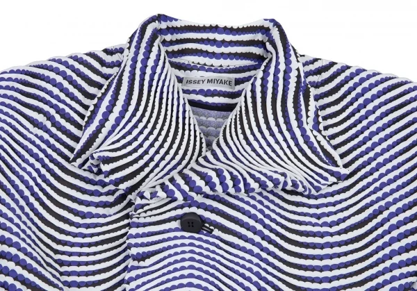 イッセイミヤケISSEY MIYAKE 波プリーツダブル七分袖ショートジャケット 白青黒M位
