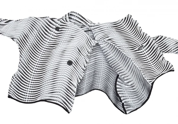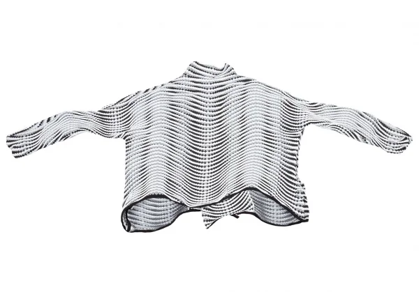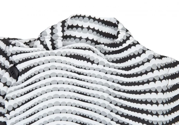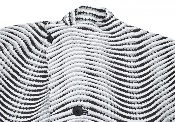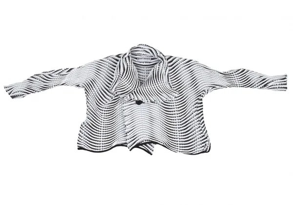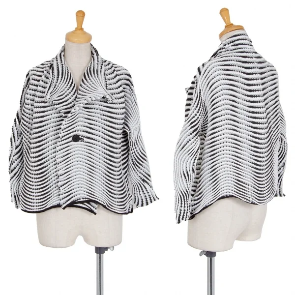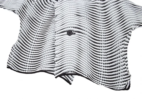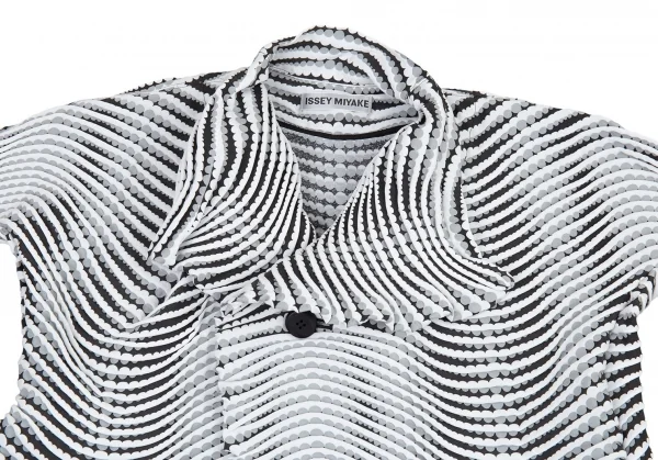 イッセイミヤケISSEY MIYAKE 波プリーツダブル七分袖ショートジャケット 白グレー黒M位