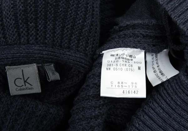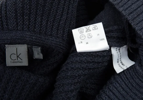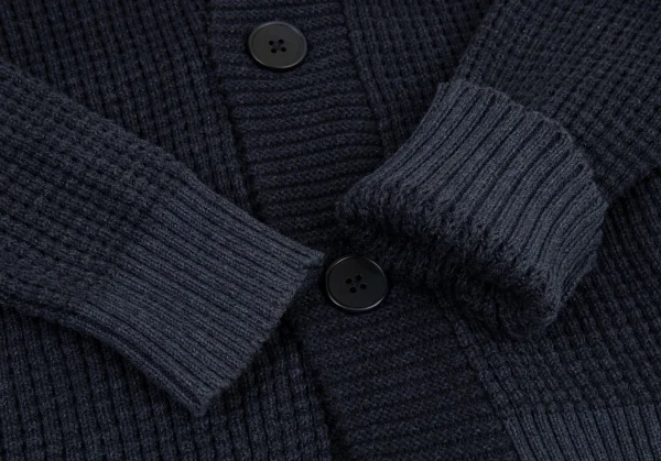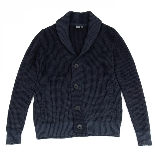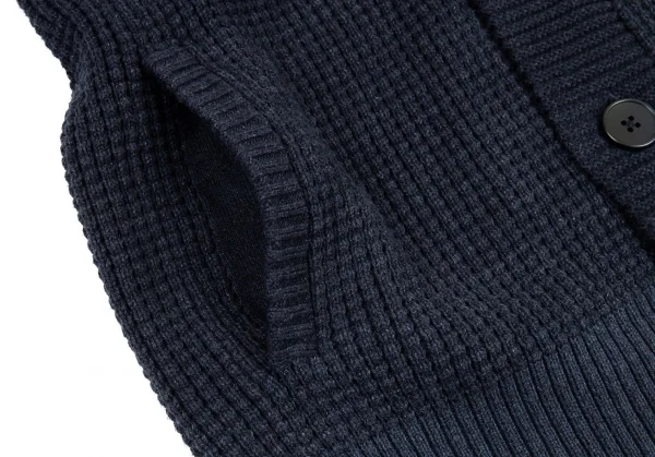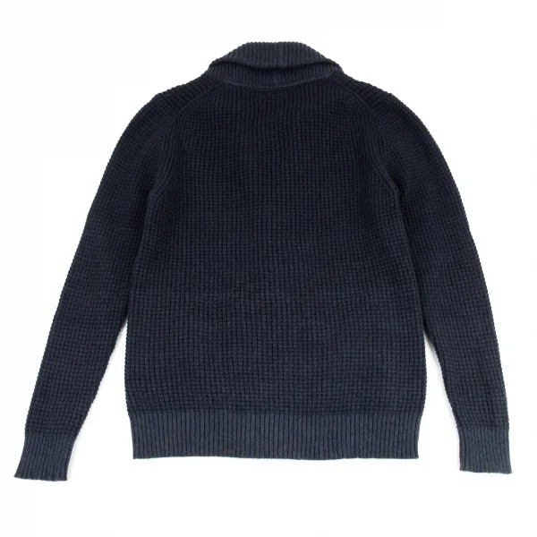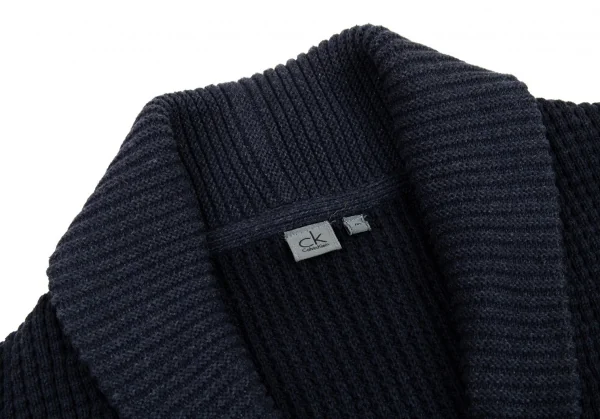 カルバンクラインCalvin Klein グラデーションワッフルニットショールカラーカーディガン 紺M