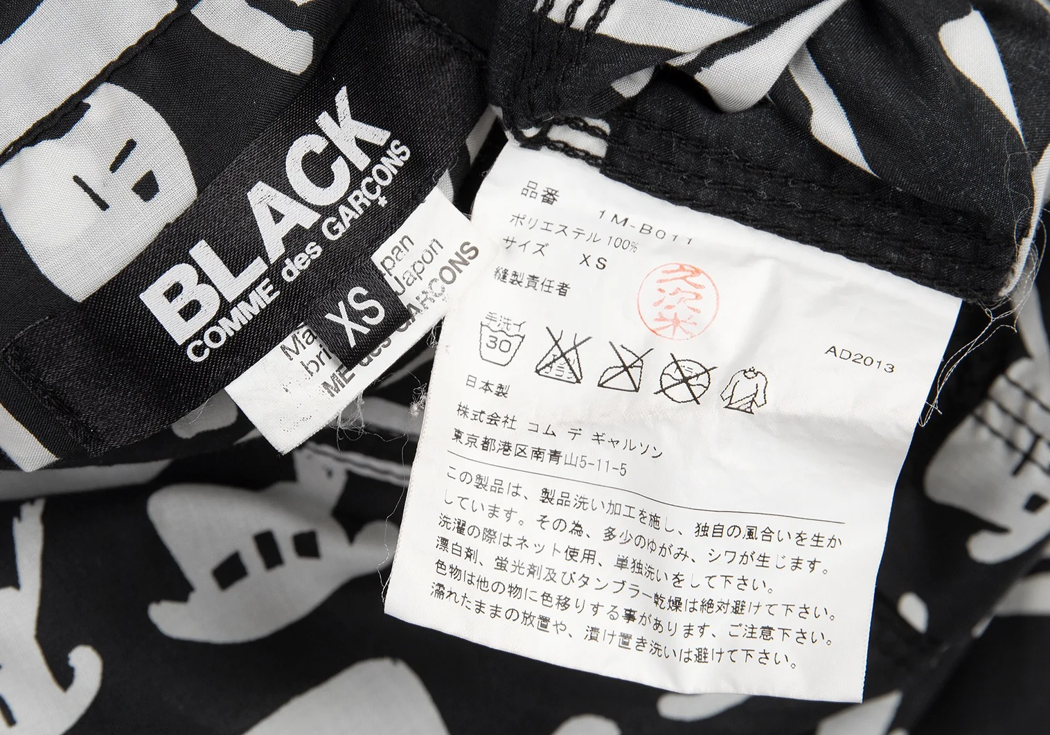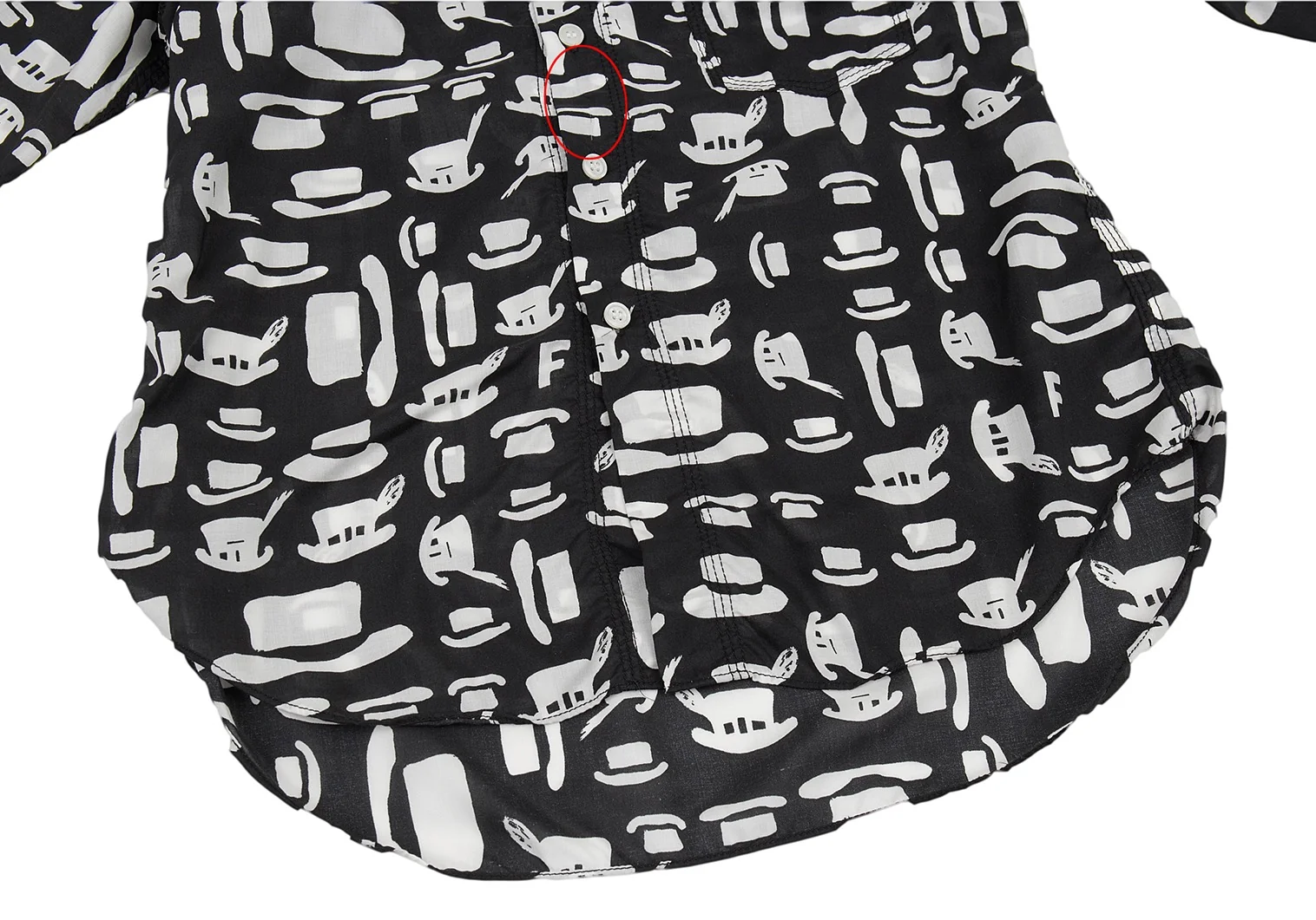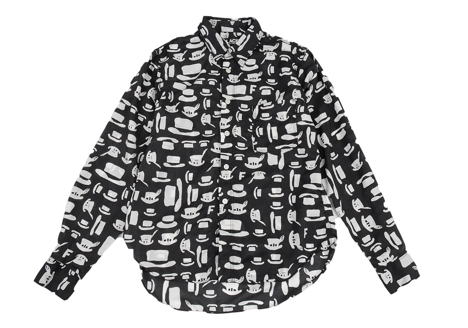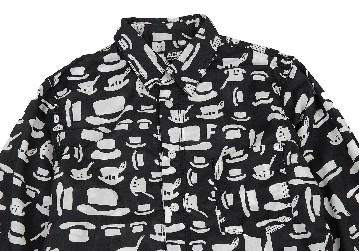 ブラックコムデギャルソンBLACK COMME des GARCONS ハット総柄プリントパッカリングシャツ 黒白XS位