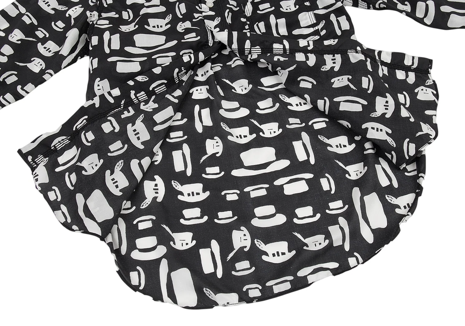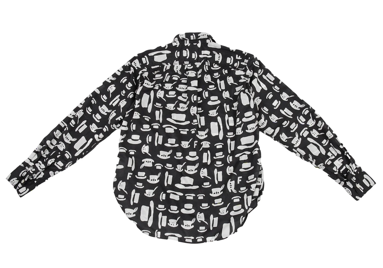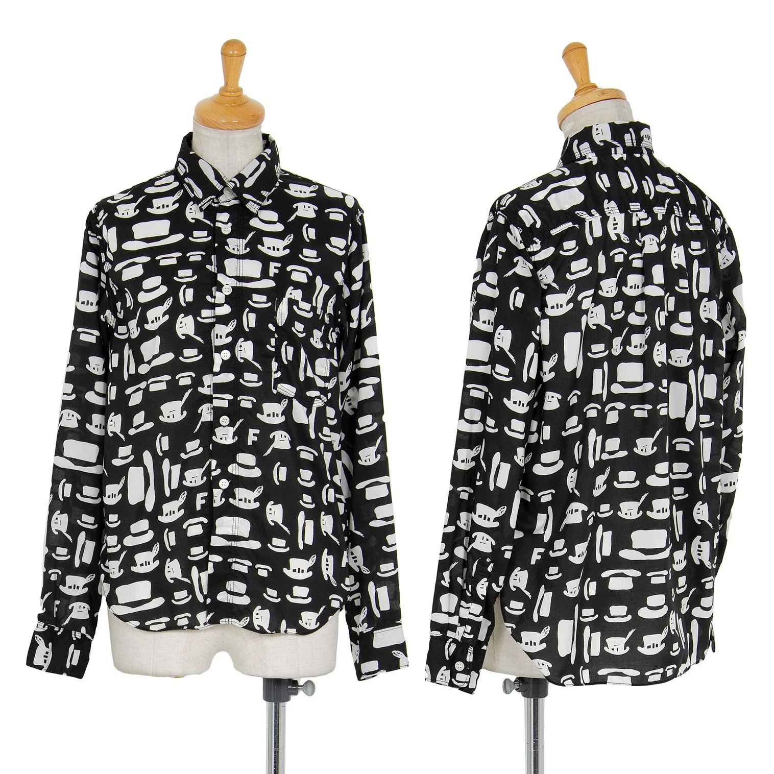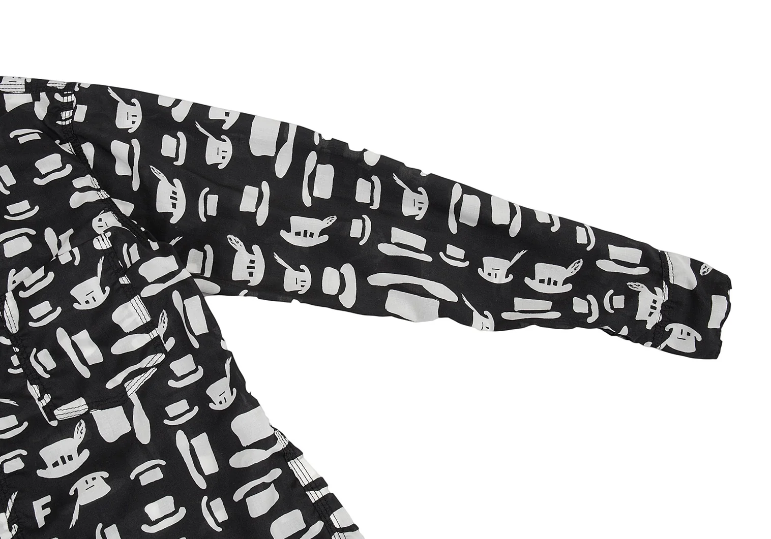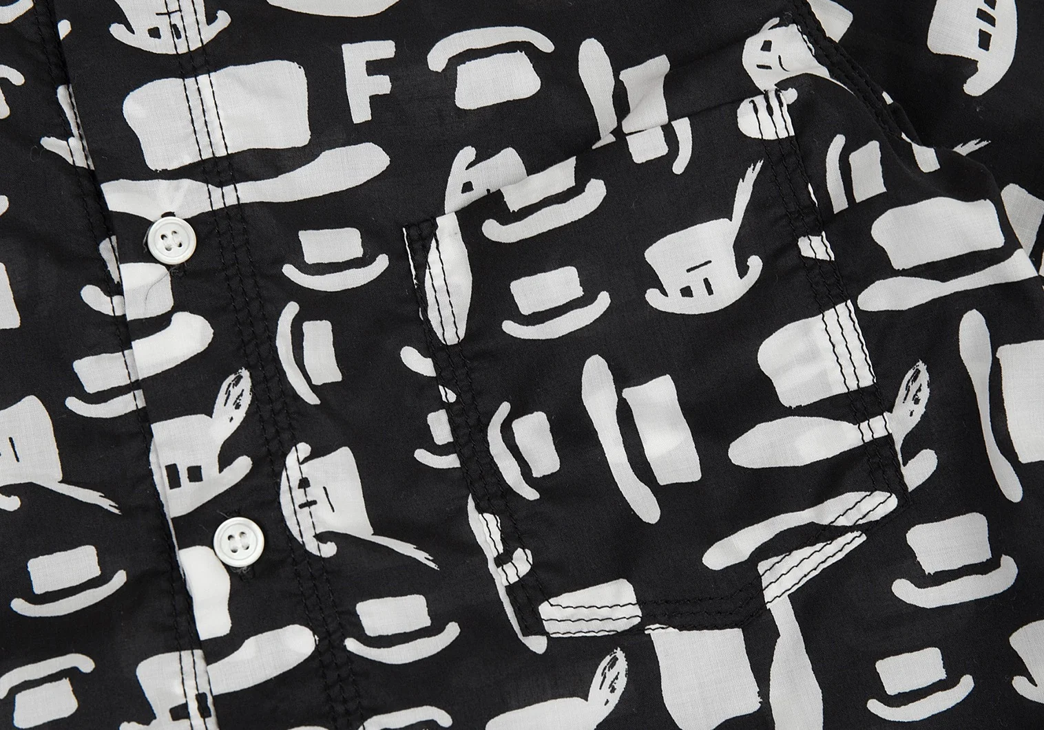 ブラックコムデギャルソンBLACK COMME des GARCONS ハット総柄プリントパッカリングシャツ 黒白XS位