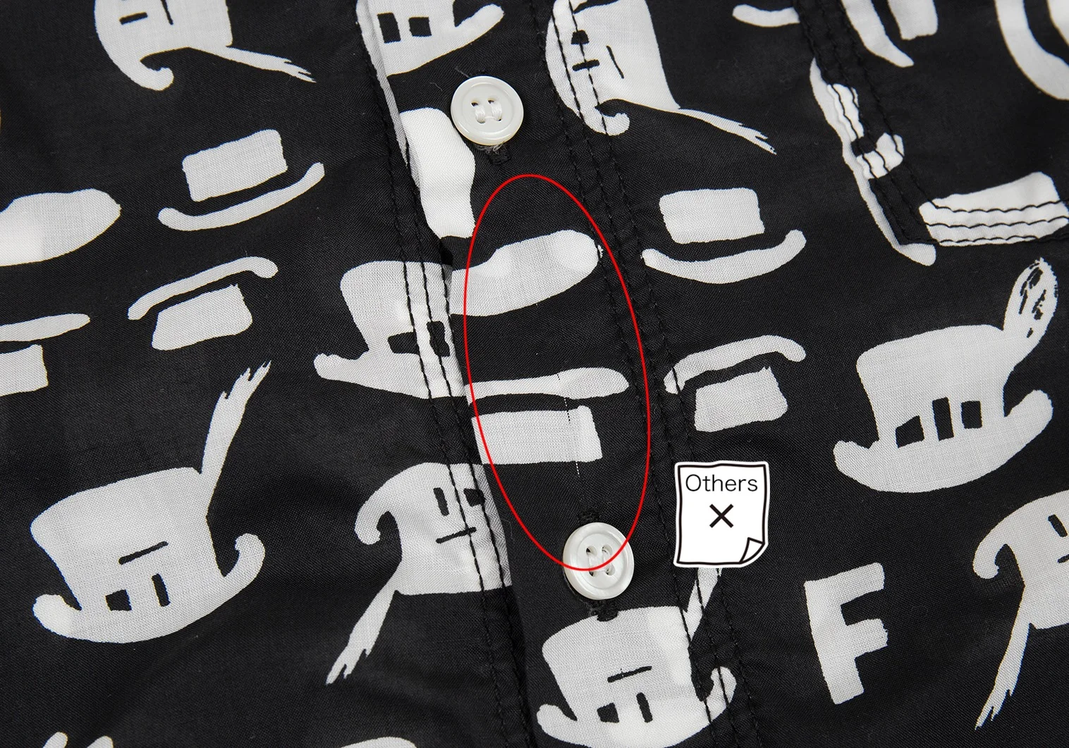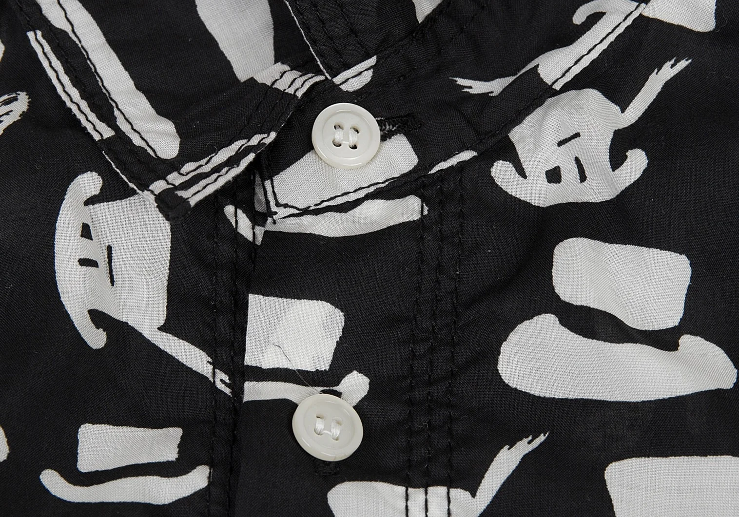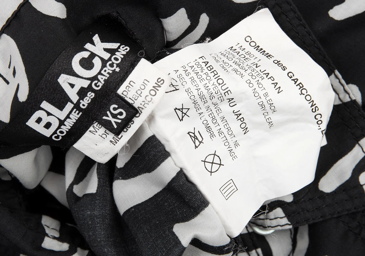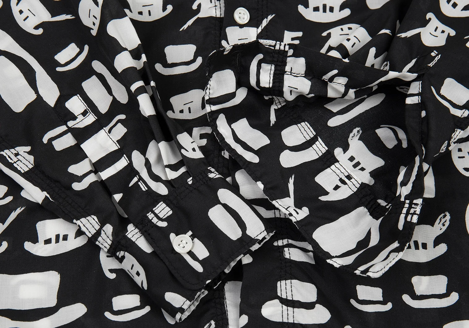 ブラックコムデギャルソンBLACK COMME des GARCONS ハット総柄プリントパッカリングシャツ 黒白XS位