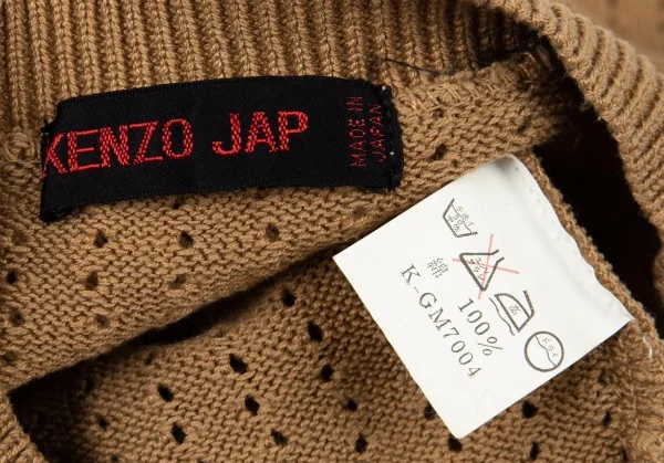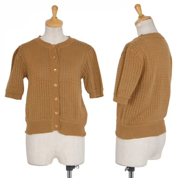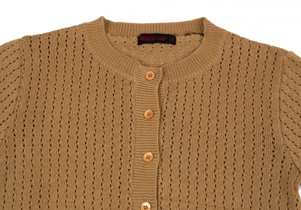 ケンゾーKENZO JAP パンチングニット半袖カーディガン モカM位