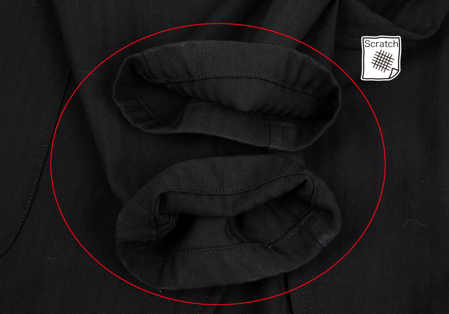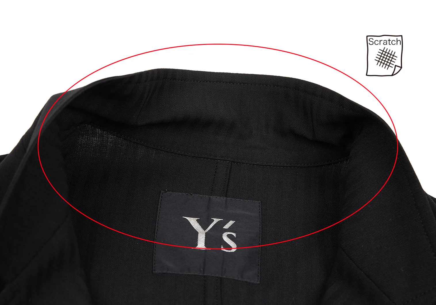 襟裏・袖先に擦れ・テカり、右袖に引っ掛けがあります(写真参照)。その他に目立ったシミ、汚れ等はありません。クリーニング済み