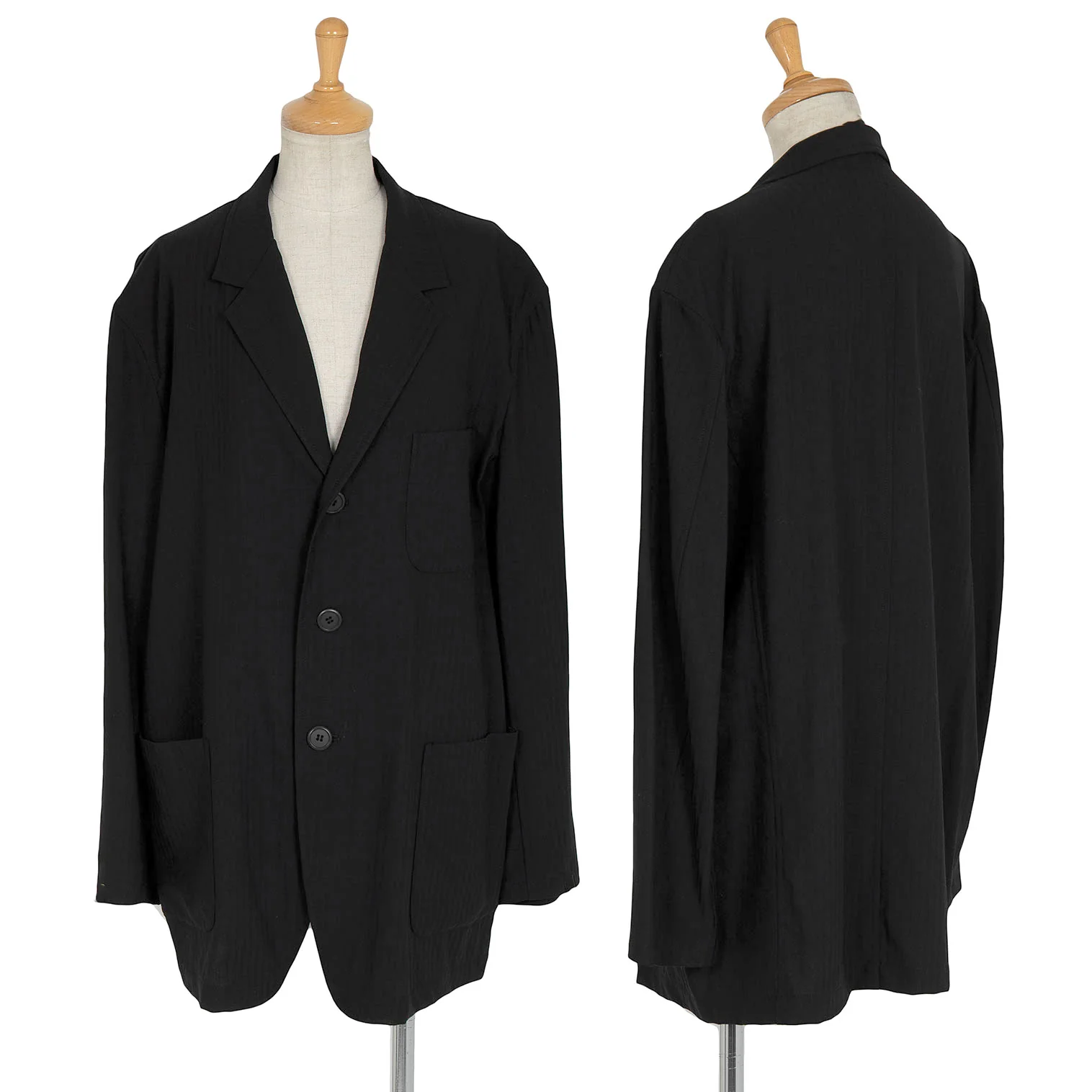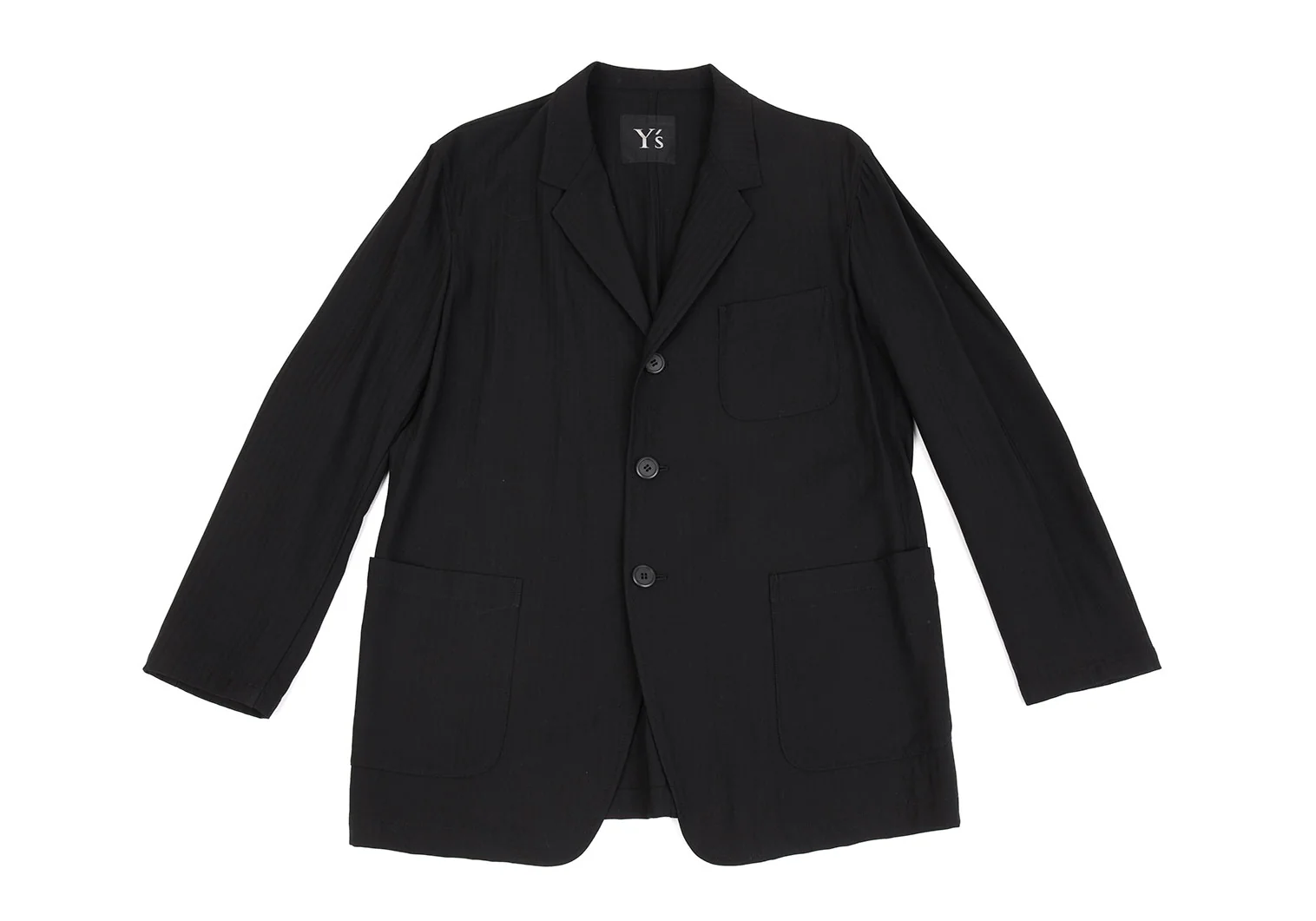 ワイズY's ストライプサマーウールパッチポケットジャケット 黒M位