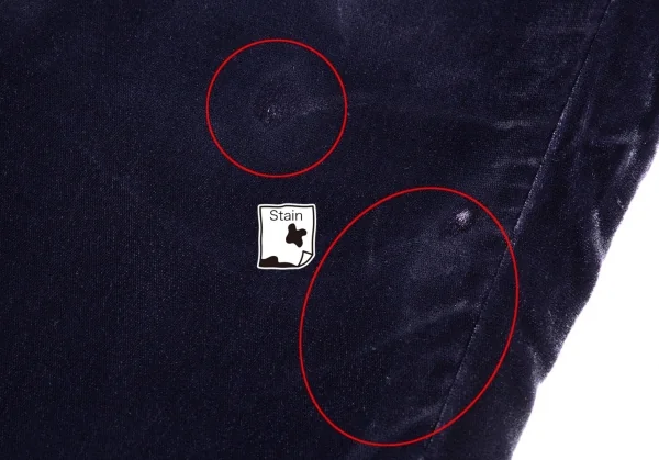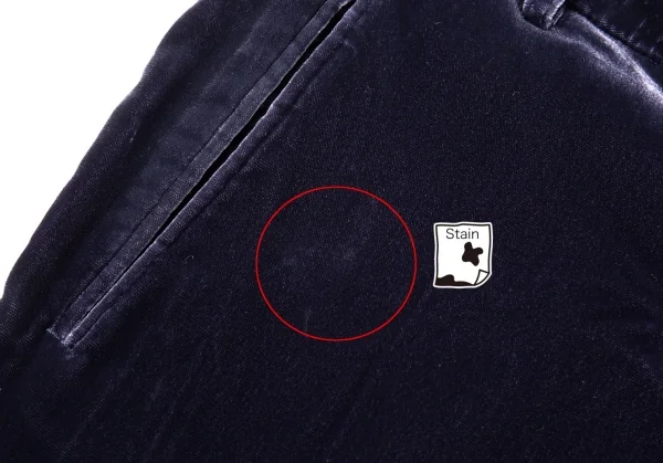 品質表示タグがありません。所々に若干の毛倒れがあります。右腿・右膝に薄シミがあります(画像参照)。その他目立ったシミ、汚れ、ほつれ等ありません。クリーニング済み