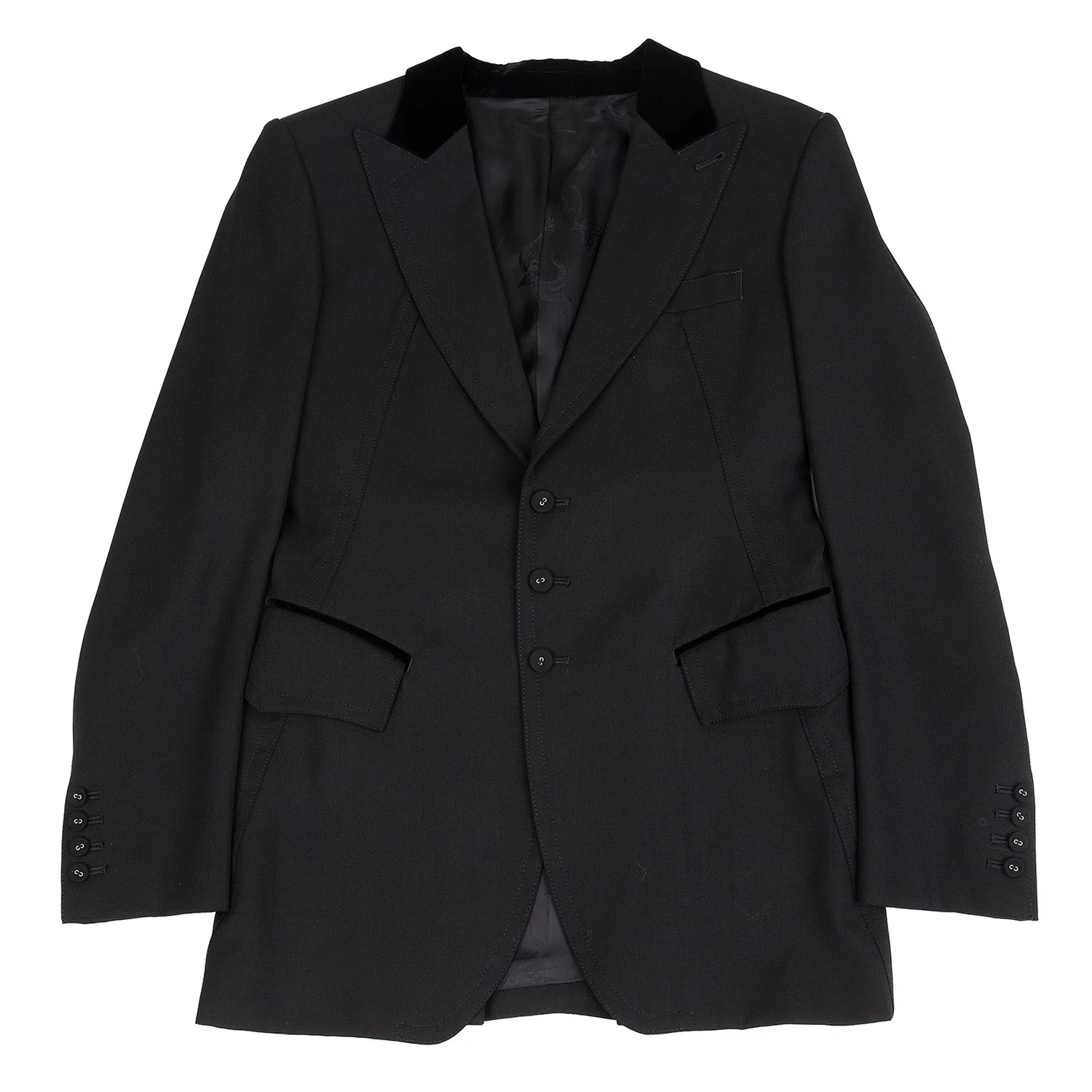 ジャンポールゴルチエJean Paul GAULTIER 裏地ミノタウロス襟ベロア切替ジャケット 黒48