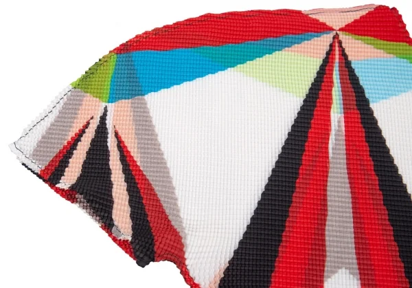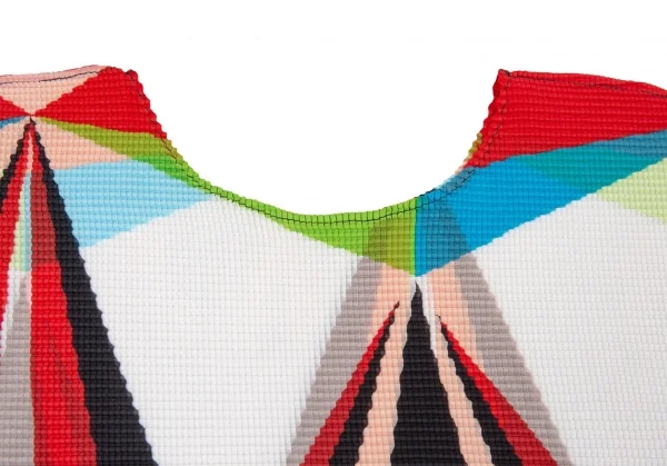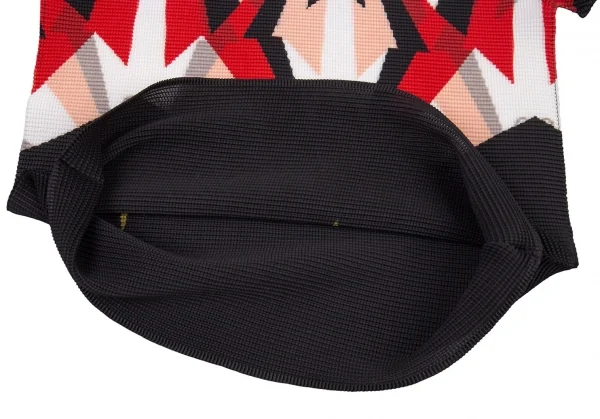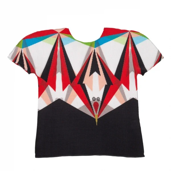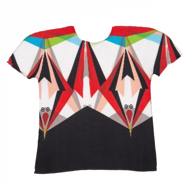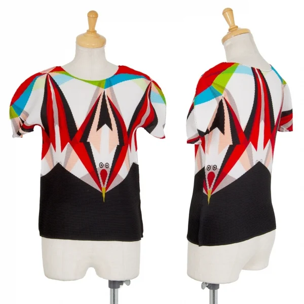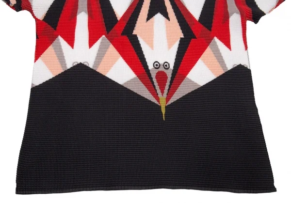 イッセイミヤケ ミーISSEY MIYAKE me TSURUグラフィックプリントニットプリーツTシャツ 黒マルチF