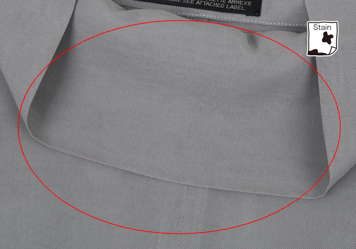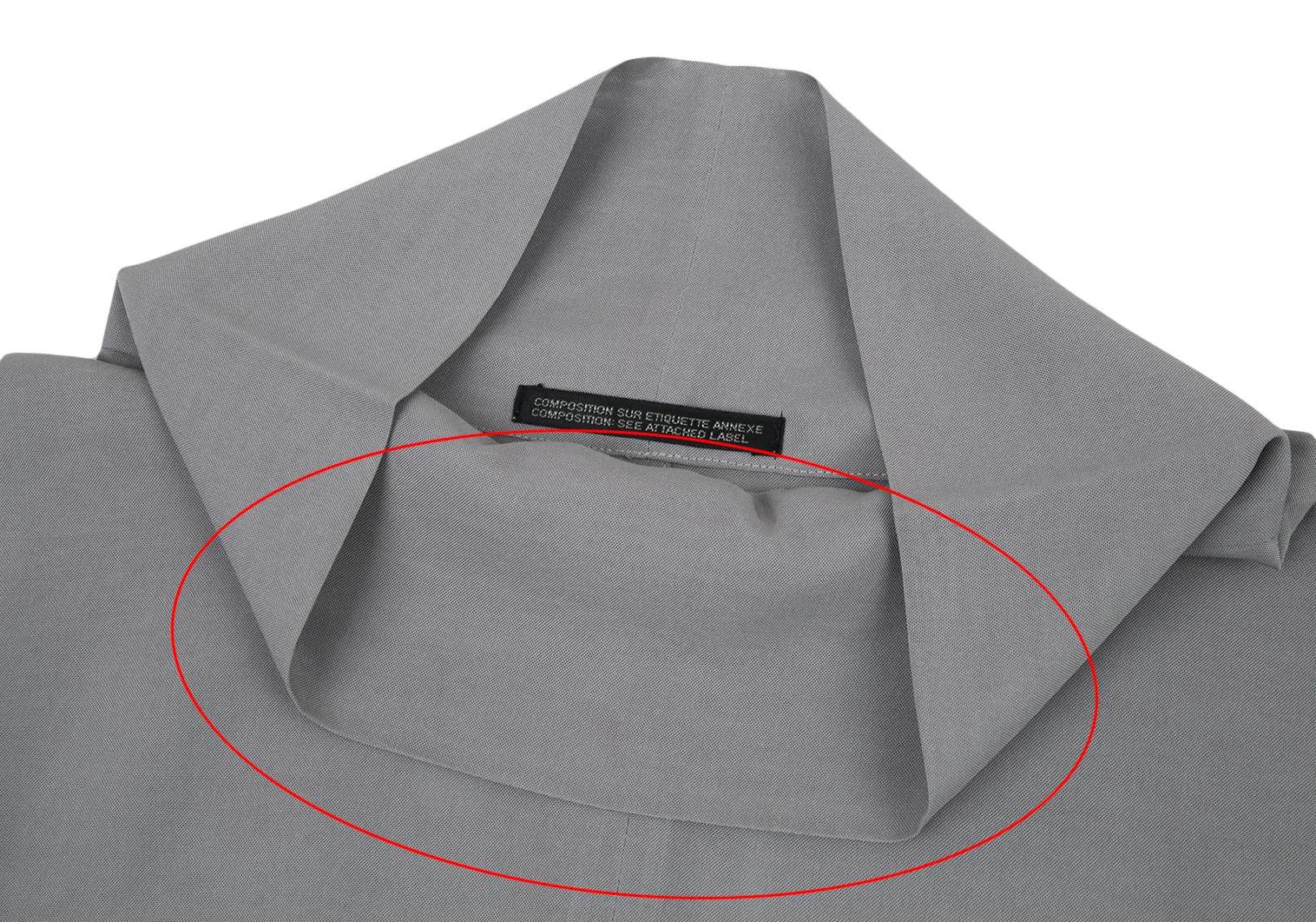 透け感があります。首元・首裏に薄汚れがあります(写真参照)。その他に目立ったシミ、汚れ、ほつれ等なくいい状態です。クリーニング済み