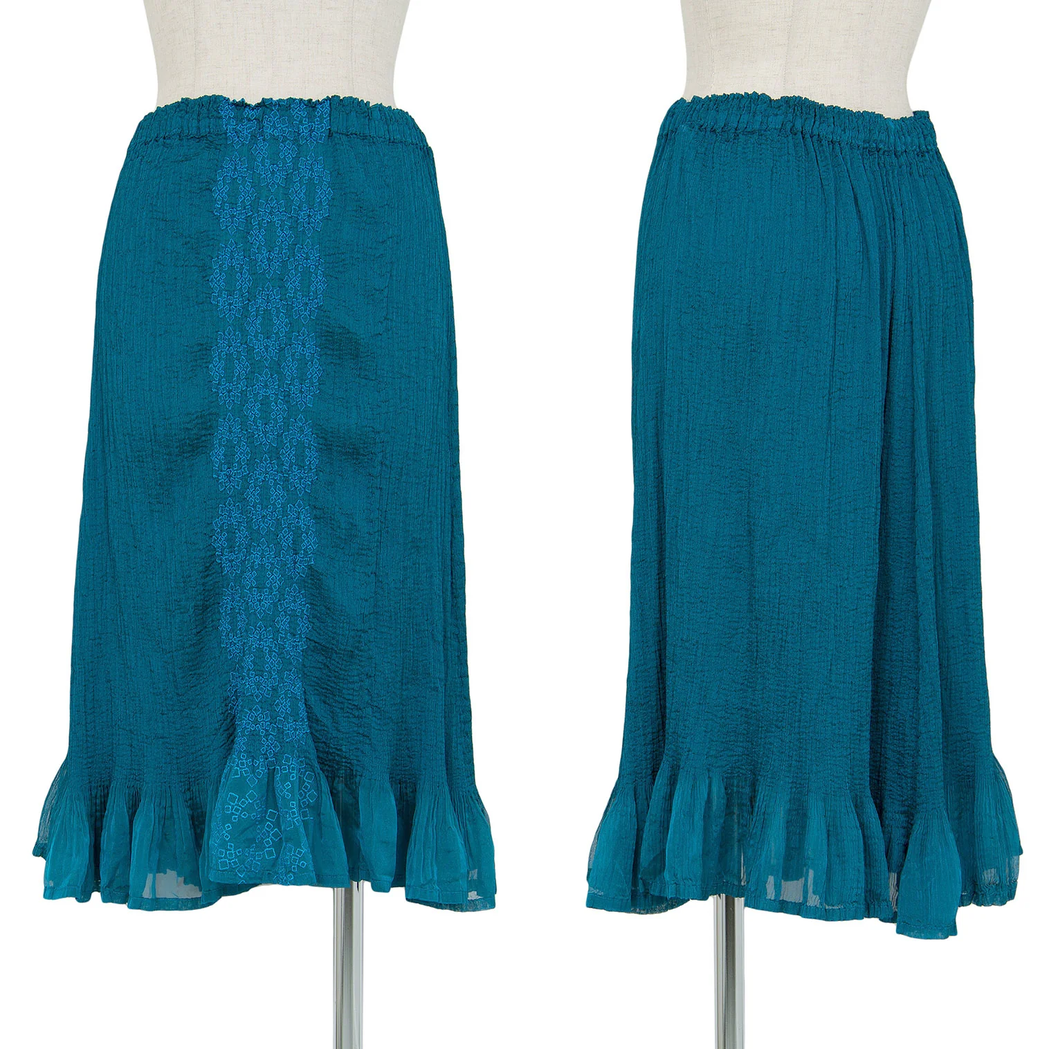 イッセイミヤケ ミーISSEY MIYAKE me スクエア刺繍消しプリーツスカート 水色F