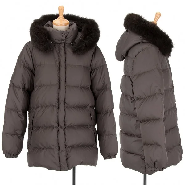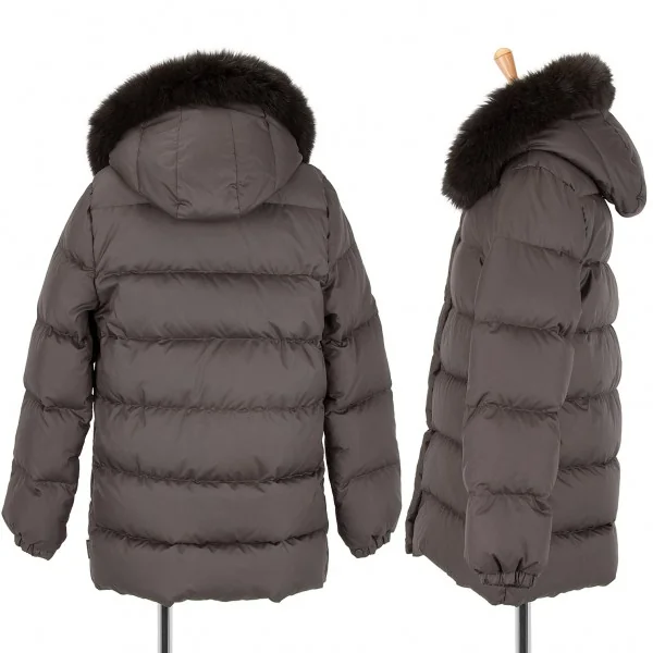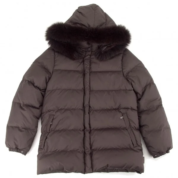 モンクレールMONCLER フォックスファー付きフードダウンジャケット VALENTINE 茶0