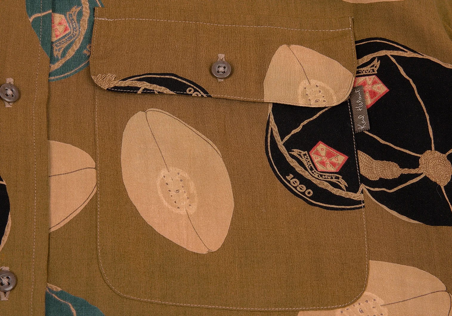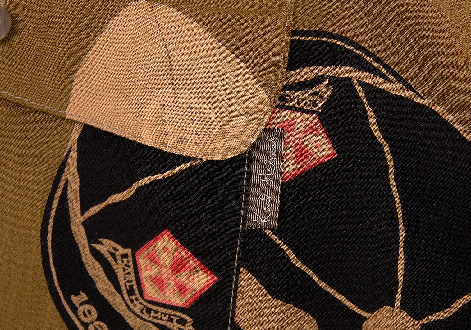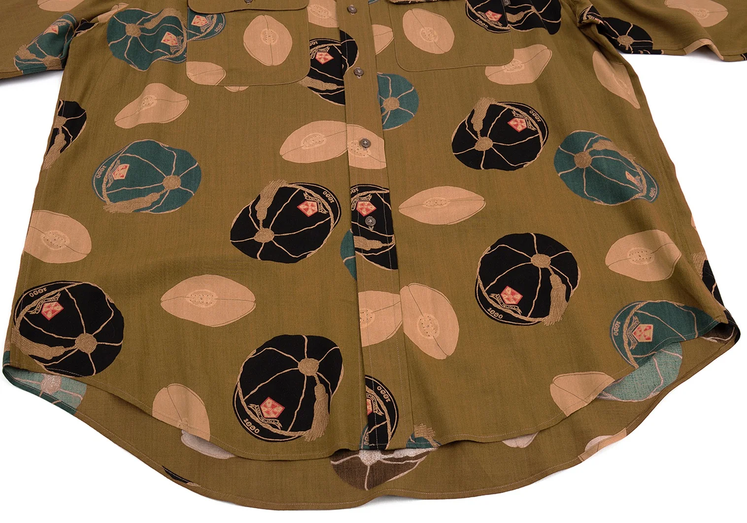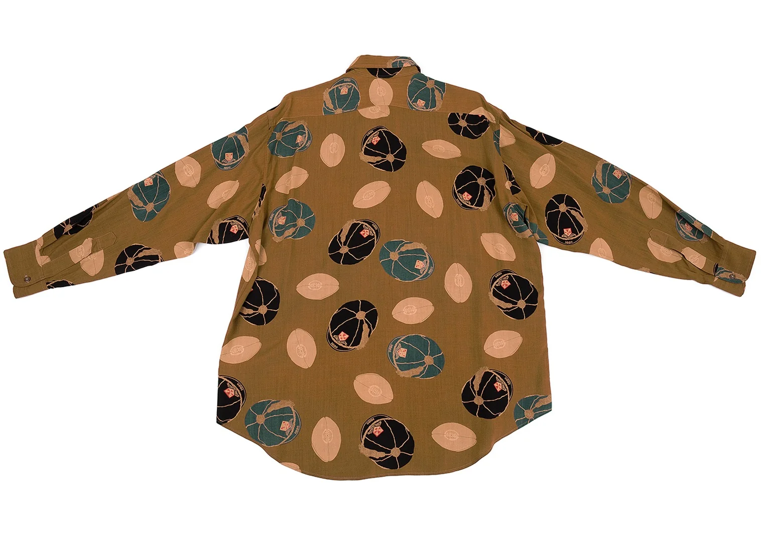カールヘルムKarl Helmut レーヨンラグビーキャッププリントボタンダウンシャツ モカL位