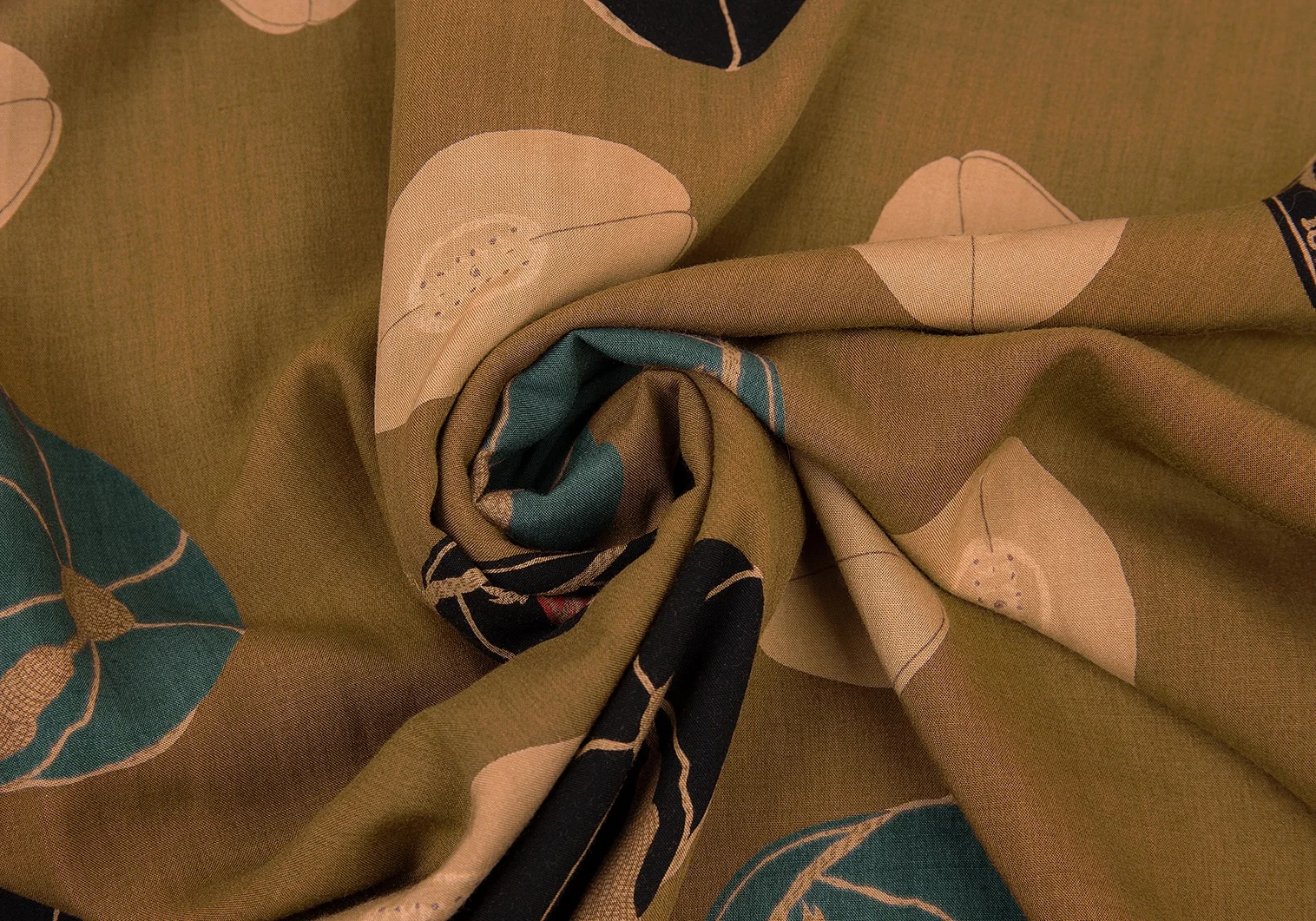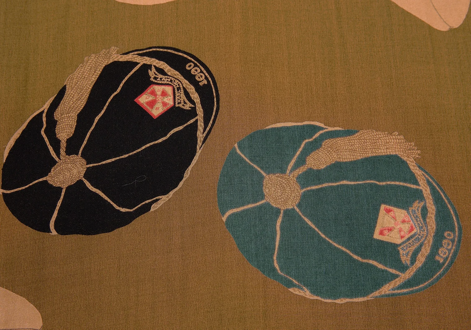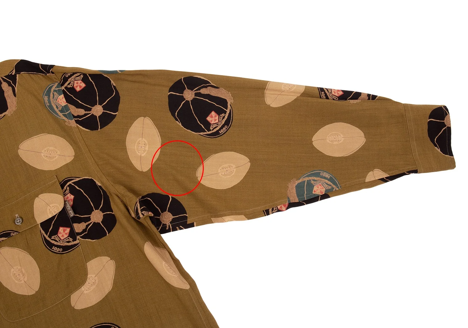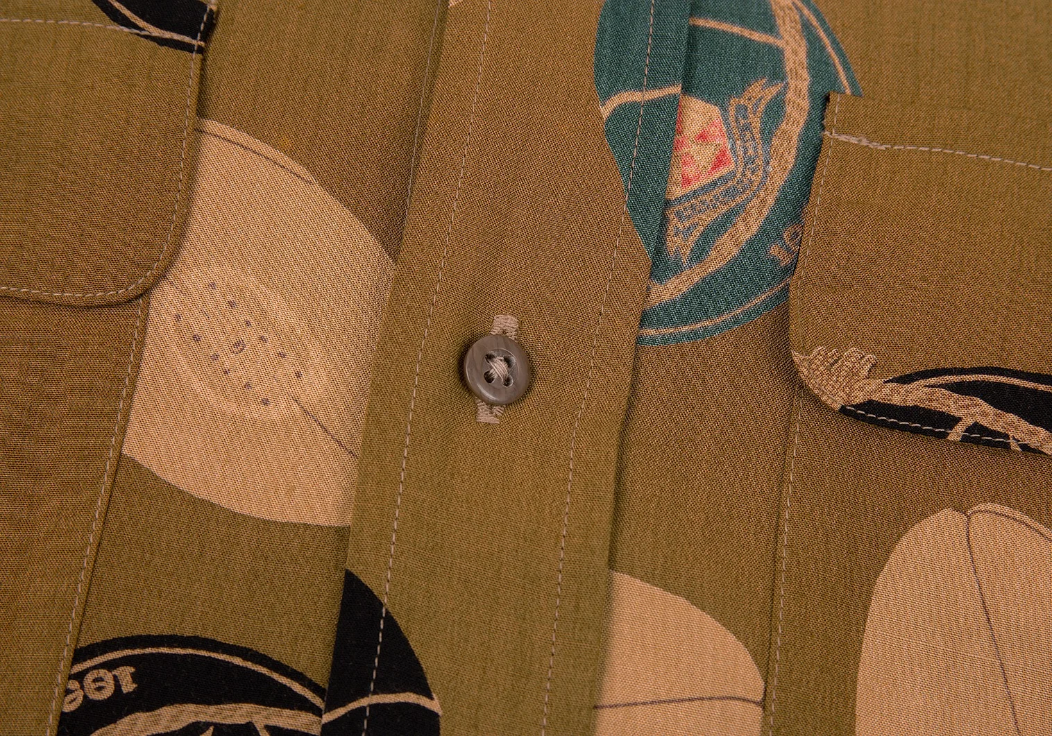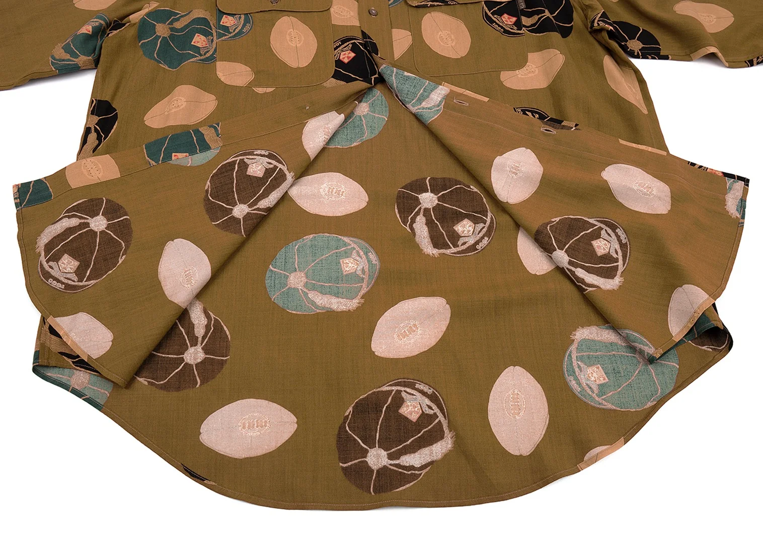カールヘルムKarl Helmut レーヨンラグビーキャッププリントボタンダウンシャツ モカL位