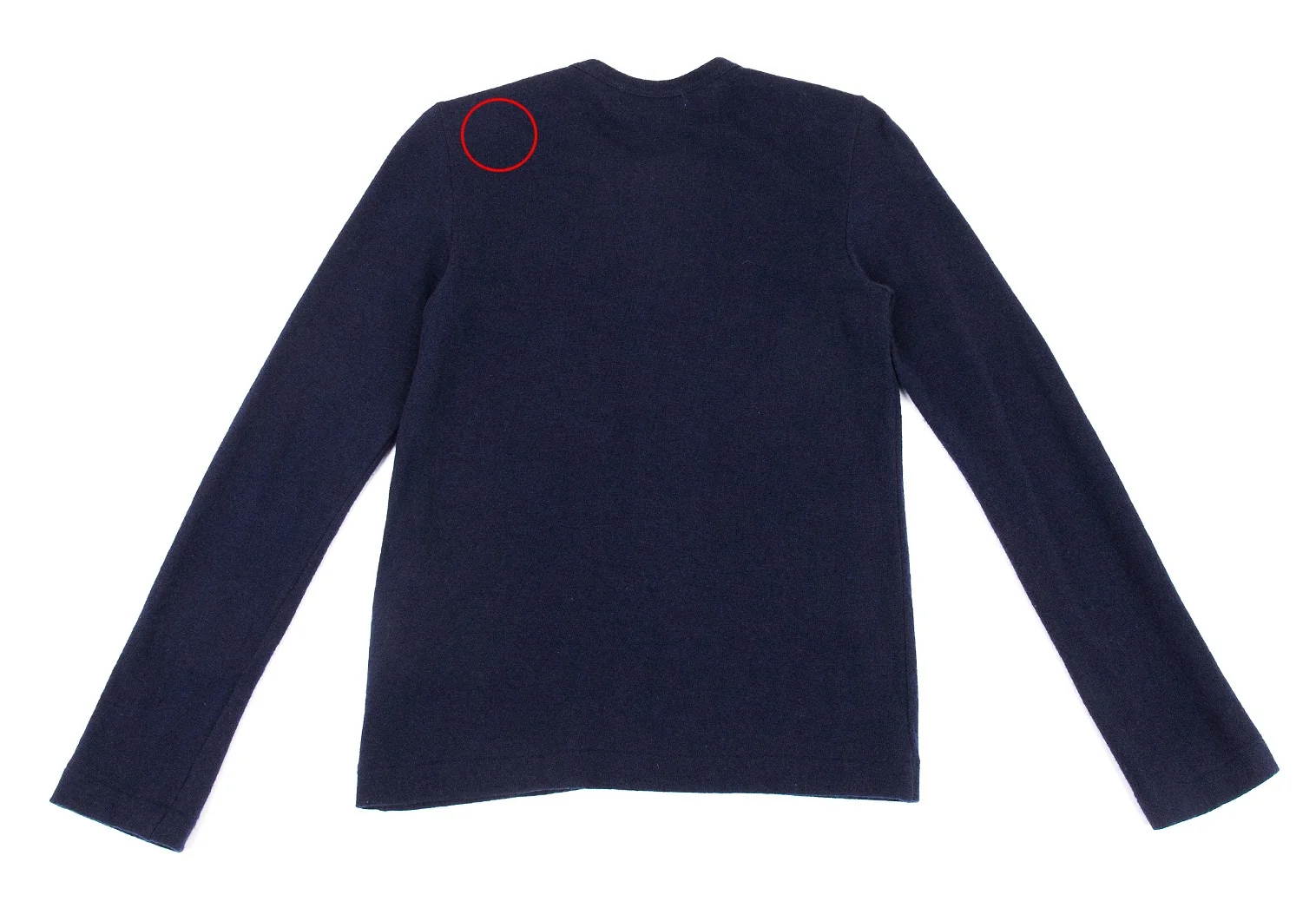 背中に穴の補修跡があります(画像参照)。その他目立ったシミ、汚れ、ほつれ等なくいい状態です。クリーニング済み